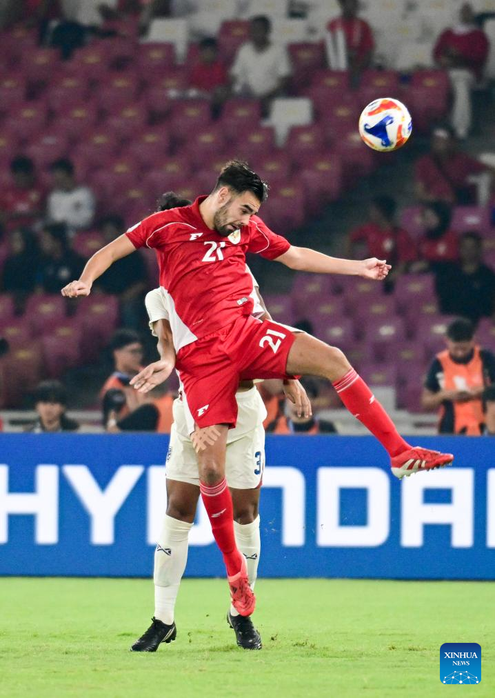 Jaime Rosquillo (R) of the Philippines competes during the ASEAN Football Federation (AFF) U23 Championship 2025 semifinal between Vietnam and the Philippines in Jakarta, Indonesia, July 25, 2025. (Xinhua/Agung Kuncahya B.)