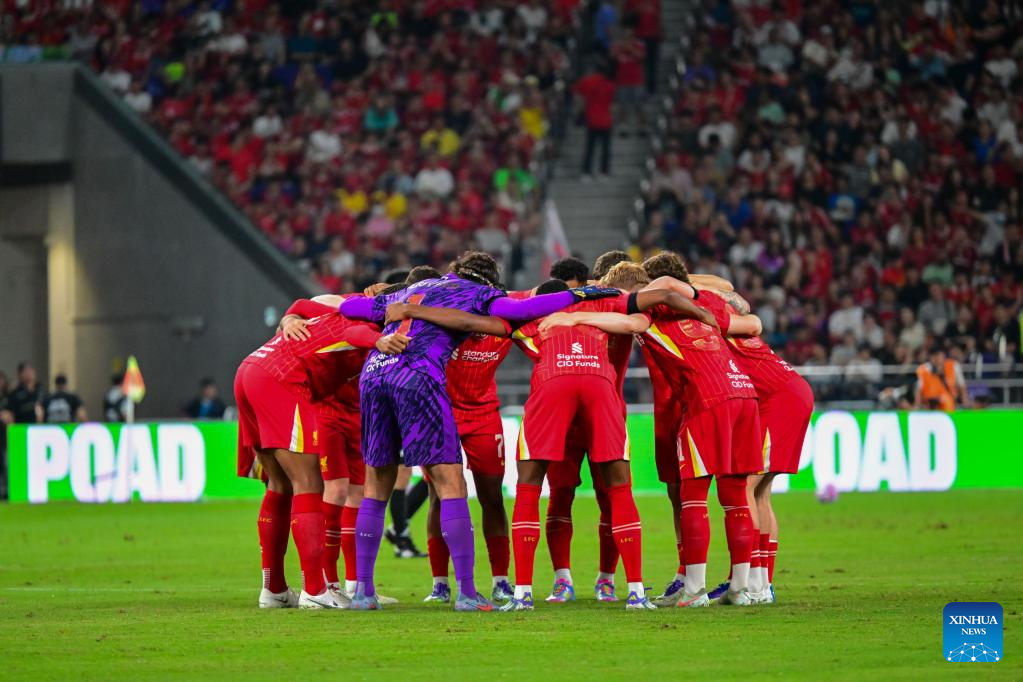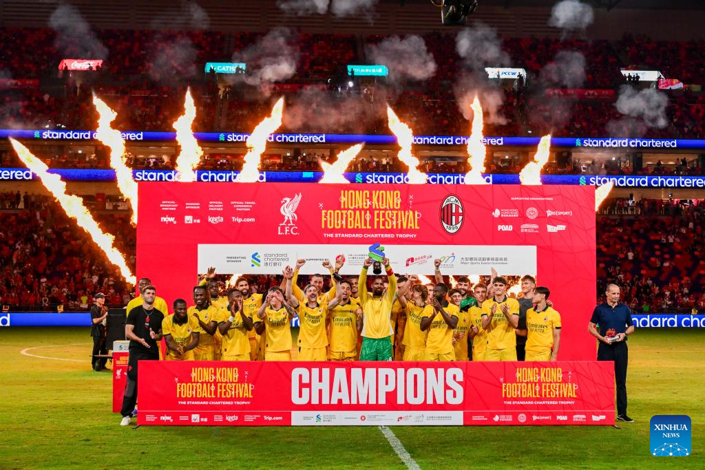 Players of Liverpool cheer before during the match between Liverpool and AC Milan of the Hong Kong Football Festival in Hong Kong, south China, July 26, 2025. (Xinhua/Zhu Wei)