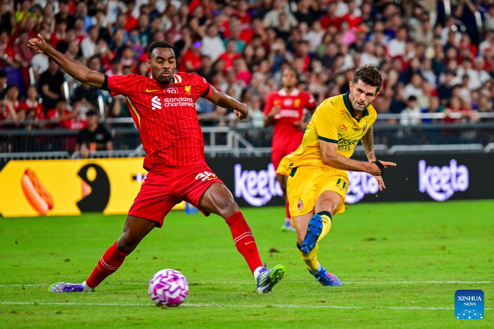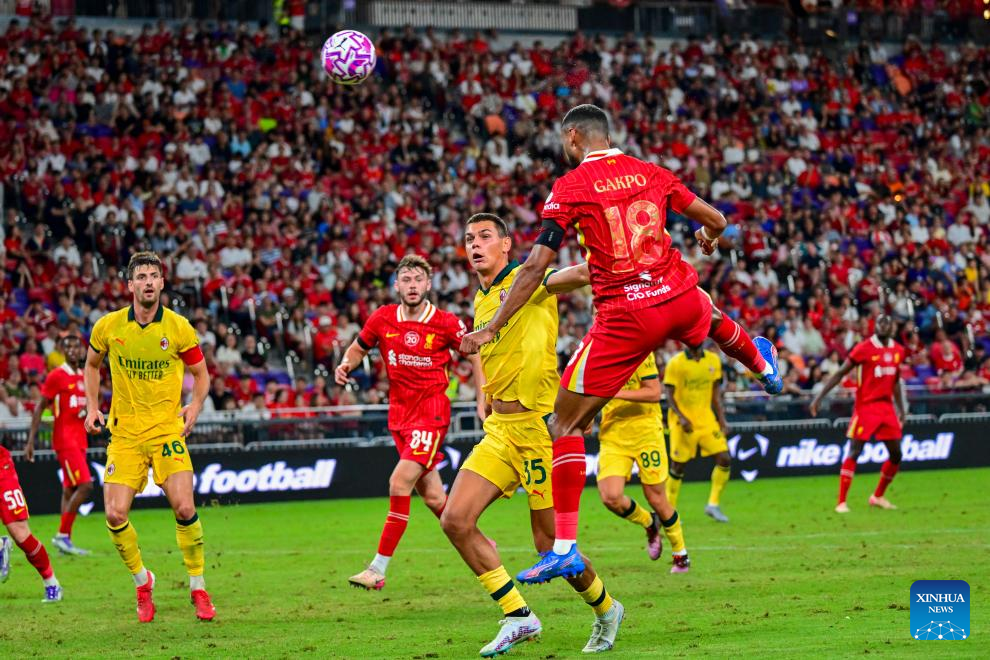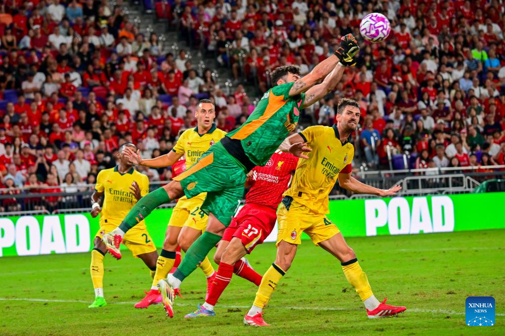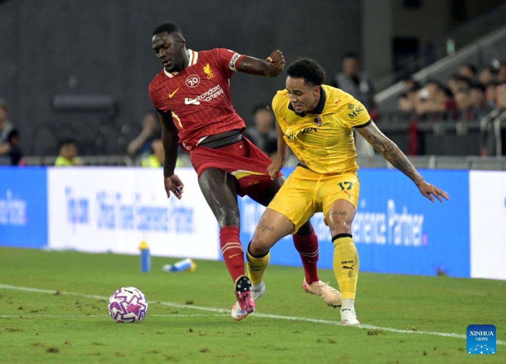 HONG KONG, July 26 (Xinhua) -- Rafael Leao scored one goal and set up another to lead AC Milan to a 4-2 win over Liverpool in a preseason friendly Saturday at Hong Kong's Kai Tak Stadium.