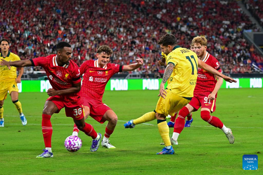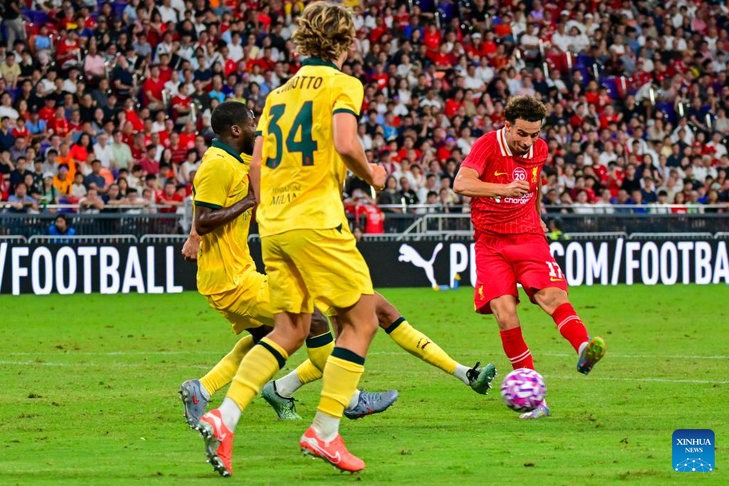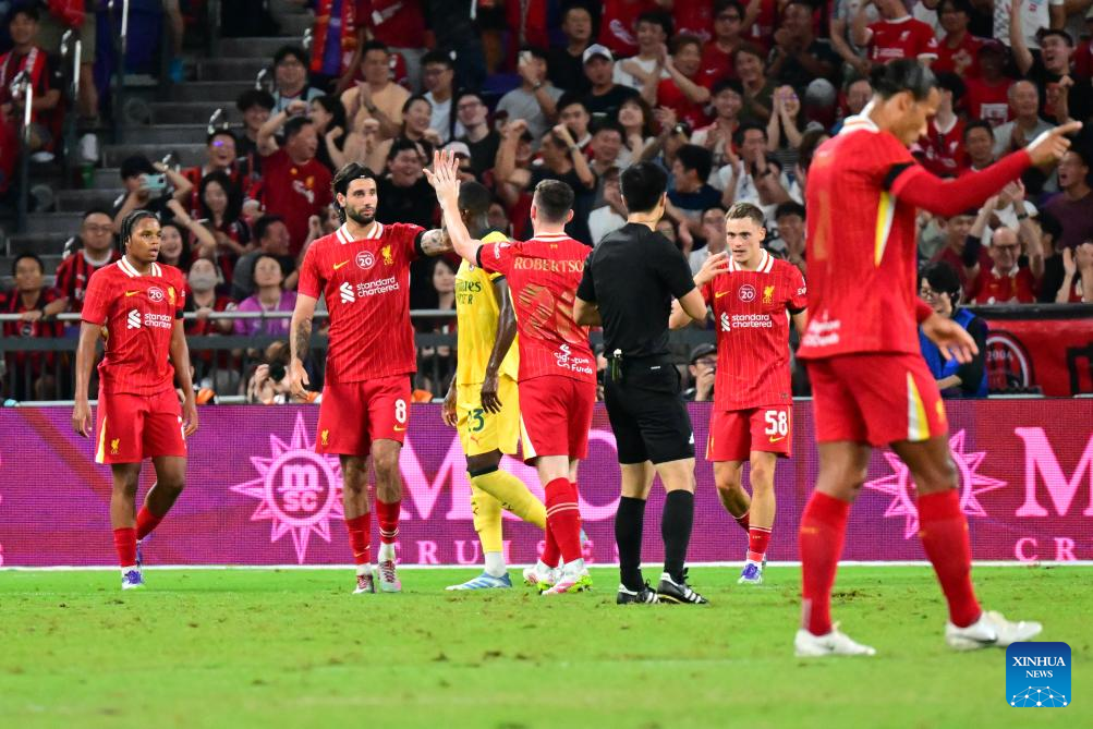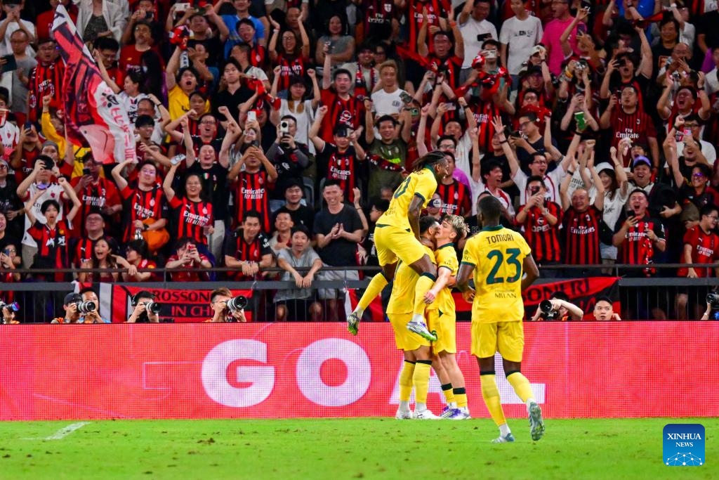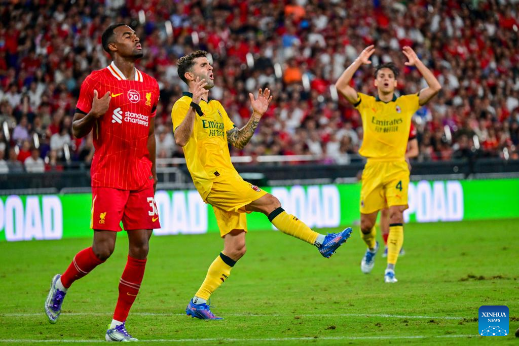 HONG KONG, July 26 (Xinhua) -- Rafael Leao scored one goal and set up another to lead AC Milan to a 4-2 win over Liverpool in a preseason friendly Saturday at Hong Kong's Kai Tak Stadium.