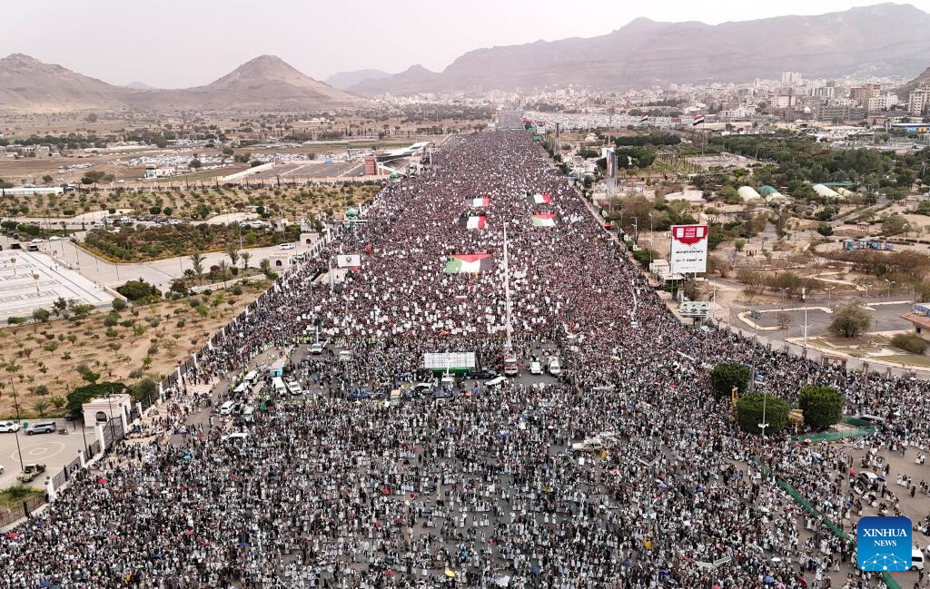 SANAA, July 25 (Xinhua) -- Tens of thousands of Yemenis gathered for a mass demonstration in the Yemeni capital Sanaa on Friday to protest against what they called a "man-made" mass starvation in the besieged Gaza Strip.