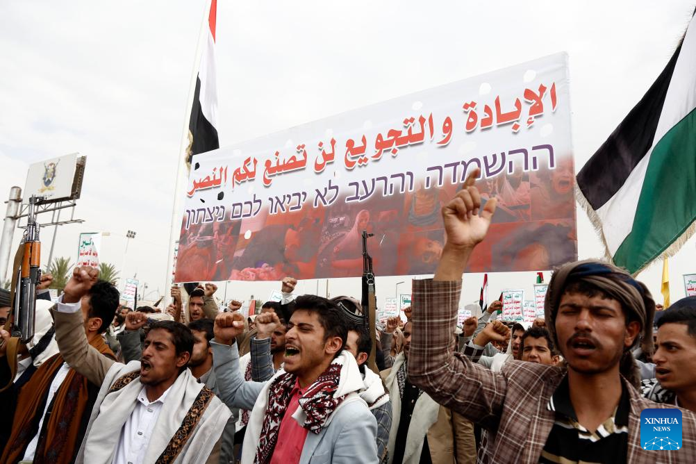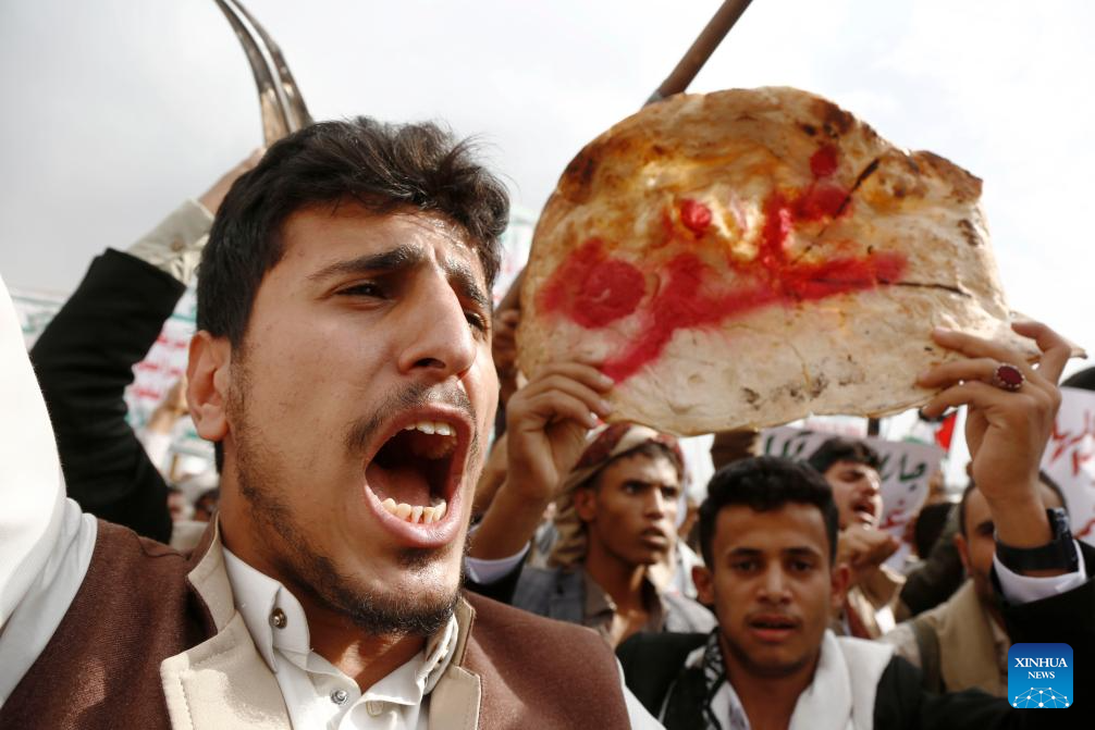 In Sanaa, the demonstrators held up pictures of the acutely malnourished mothers and children of Gaza that went viral on mainstream media. There were also bridegrooms attending the protest. They told Xinhua that despite the joy on their wedding day, they joined the demonstration to express their anger about the humanitarian tragedy and the "deliberate starvation" of the Palestinian people in Gaza.
