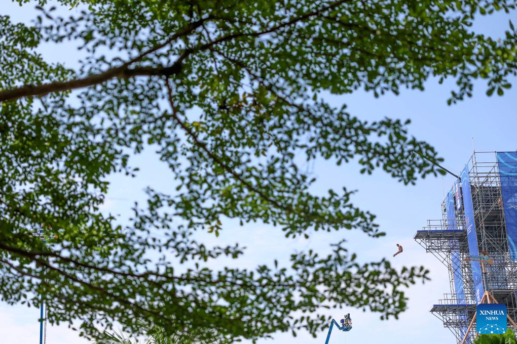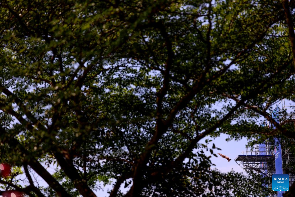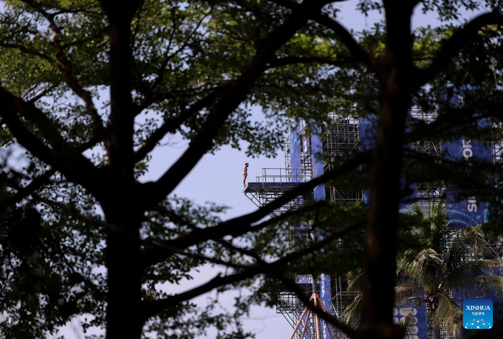 Juan Manuel Gil of Colombia competes during the men's 27m final of high diving event at the World Aquatics Championships in Singapore, July 27, 2025. (Xinhua/Luo Yuan)