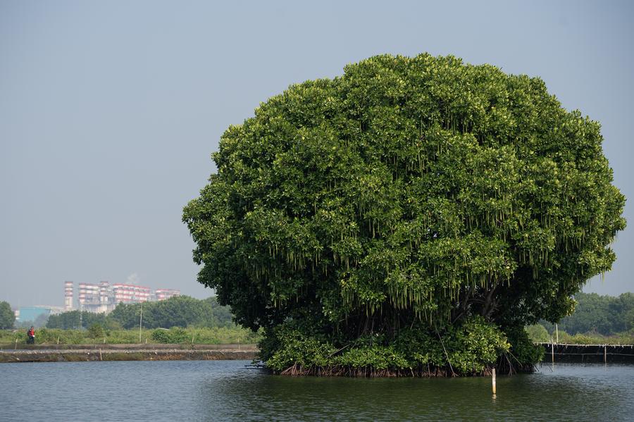 BEKASI, Indonesia, July 27 (Xinhua) -- Mangrove forests, home to a diverse array of animals and insects, stabilize shorelines, reduce erosion from waves and tides, and act as a buffer against storm surges and tsunamis in the Bekasi district of West Java province, Indonesia.