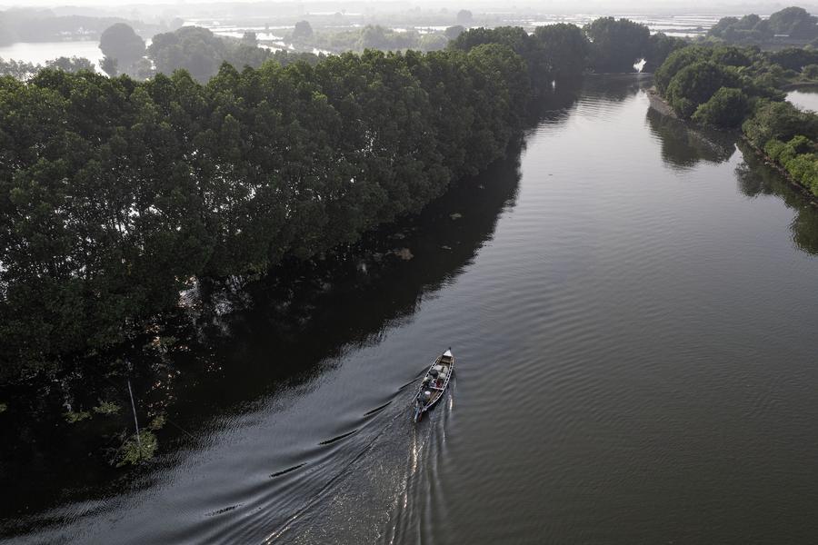Mangrove trees are seen in a seaweed pond at Tarumajaya village of Bekasi district, in West Java province, Indonesia, July 26, 2025. (Xinhua/Veri Sanovri)An aerial drone photo shows the mangrove forest on the coast near Tarumajaya village, in Bekasi district of West Java province, Indonesia, July 26, 2025. (Xinhua/Veri Sanovri)Fishing boats return home along a river, flanked by mangrove trees, at Tarumajaya village of Bekasi district, in West Java province, Indonesia, July 26, 2025. (Xinhua/Veri Sanovri)A drone photo shows a fishing boat returning home along a river, flanked by mangrove trees, at Tarumajaya village of Bekasi district, in West Java province, Indonesia, July 26, 2025. (Xinhua/Veri Sanovri)An aerial drone photo shows the mangrove forest on the coast near Tarumajaya village, in Bekasi district of West Java province, Indonesia, July 26, 2025. (Xinhua/Veri Sanovri)■