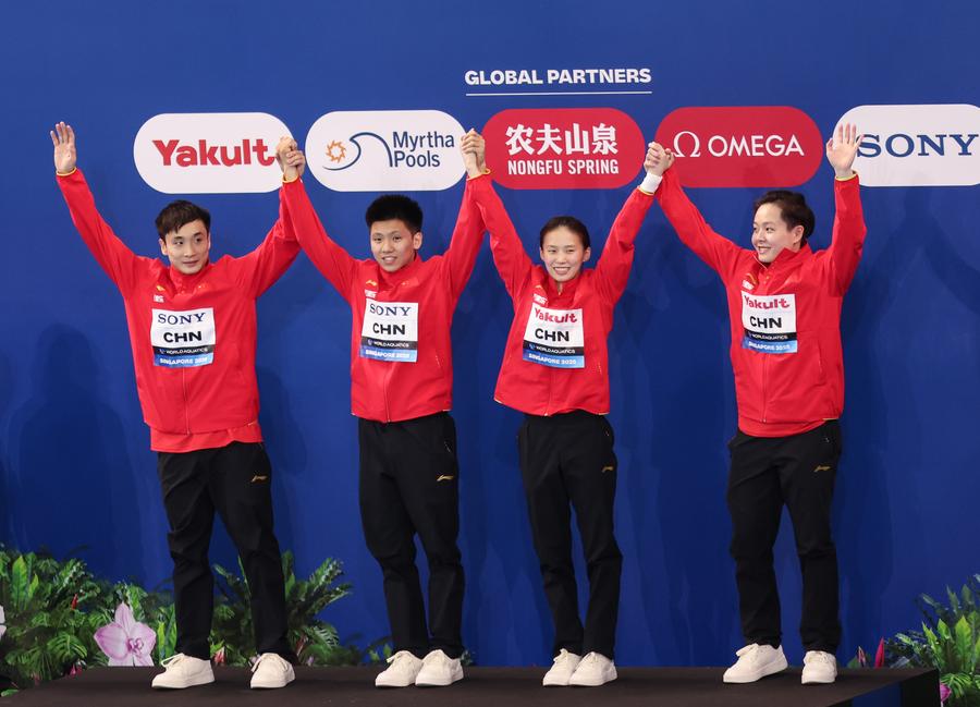 SINGAPORE, July 26 (Xinhua) -- China kicked off its diving campaign at the 2025 World Aquatics Championships with a gold medal in the mixed team event on Saturday.