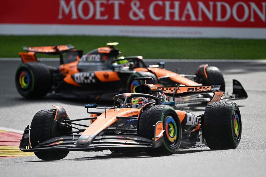 Race control suspended the formation lap behind the safety car after half a lap, sending the field back to the pits before resuming with multiple laps under the safety car. When green flag racing finally began, Piastri launched past pole-sitter Norris through Eau Rouge into Les Combes in a decisive move that set the tone for the rest of the Grand Prix.