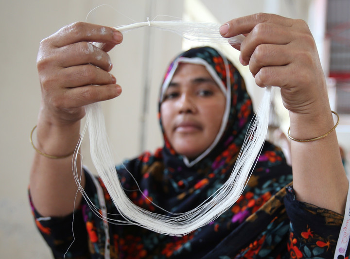 Achia Begum, one of the project's weavers, described the challenges of working with such delicate yarn.