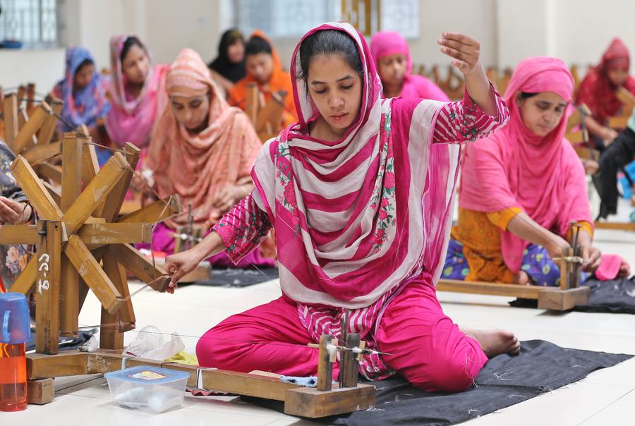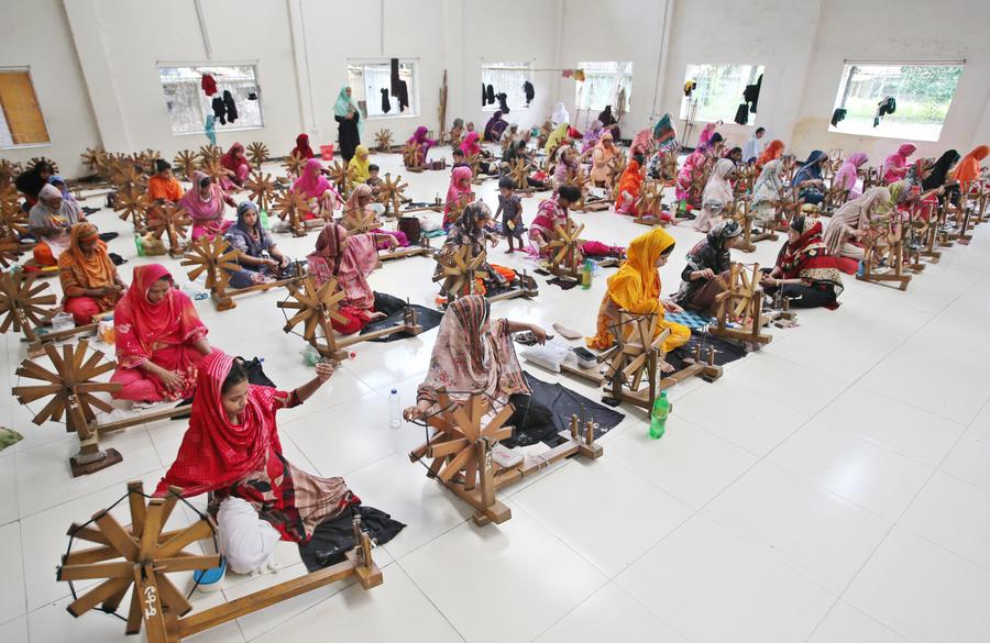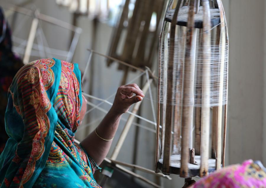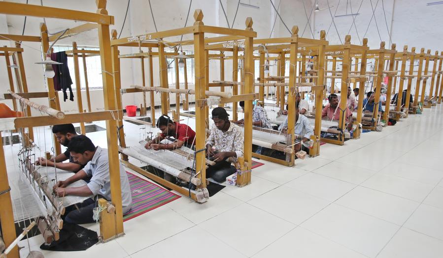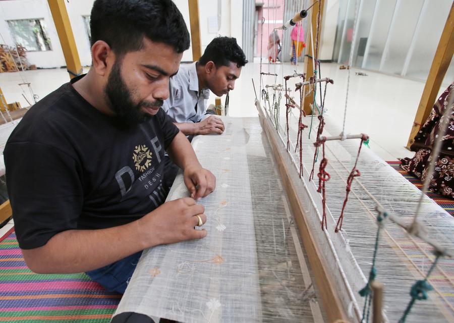 HONG KONG, July 28 (Xinhua) -- The morning glow pierces through the haze, spilling into a weaving workshop in Old Dhaka. Under its soft radiance, weavers' hands dance across an ancient loom, with their fingers guiding gossamer cotton threads into the delicate weave of Dhaka muslin fabric. Once hailed as "woven air" for its ethereal lightness and intricate craftsmanship, the legendary textile is now stirring from the ashes of history.