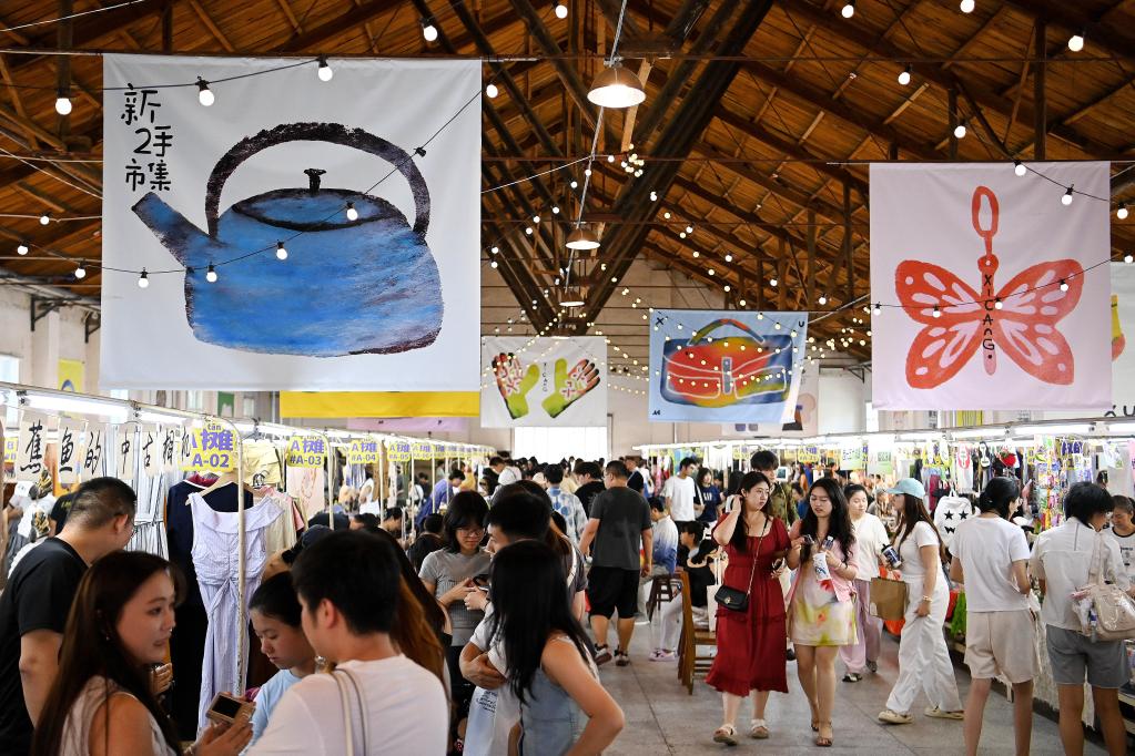 Tourists visit a second-hand market at the Xicang Urban Memories Park in Lianhu District of Xi'an, northwest China's Shaanxi Province, July 27, 2025. (Xinhua/Zou Jingyi)