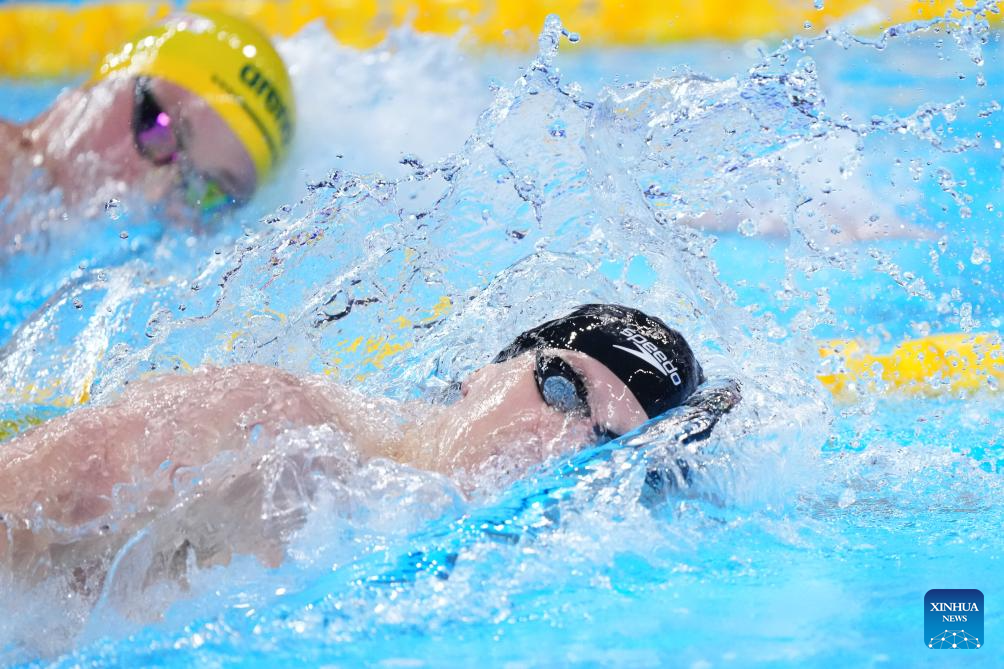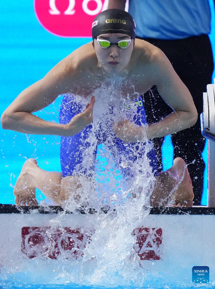 Kim Woomin of South Korea competes during the men's 400m freestyle of swimming at the World Aquatics Championships in Singapore, July 27, 2025. (Xinhua/Luo Yuan)