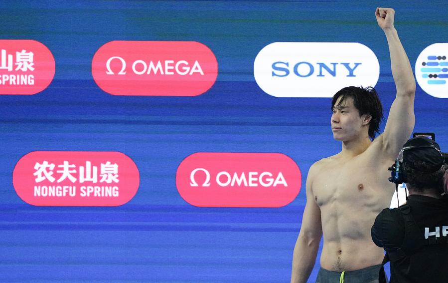 SINGAPORE, July 28 (Xinhua) -- Qin Haiyang claimed the men's 100-meter breaststroke title on Monday, securing China's first swimming gold medal at the World Aquatics Championships in Singapore.