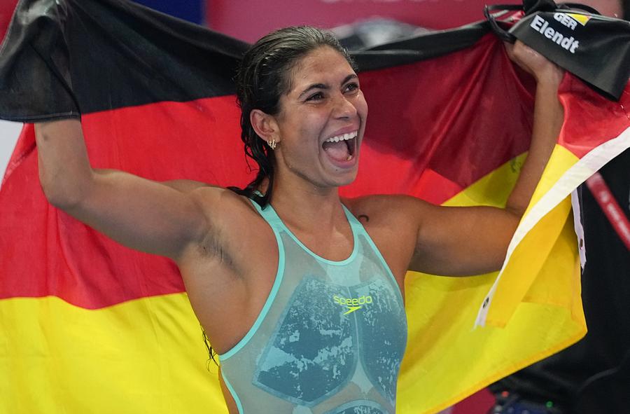 SINGAPORE, July 29 (Xinhua) -- Germany's Anna Elendt delivered a career-best performance on Tuesday night to win the women's 100-meter breaststroke at the World Aquatics Championships.