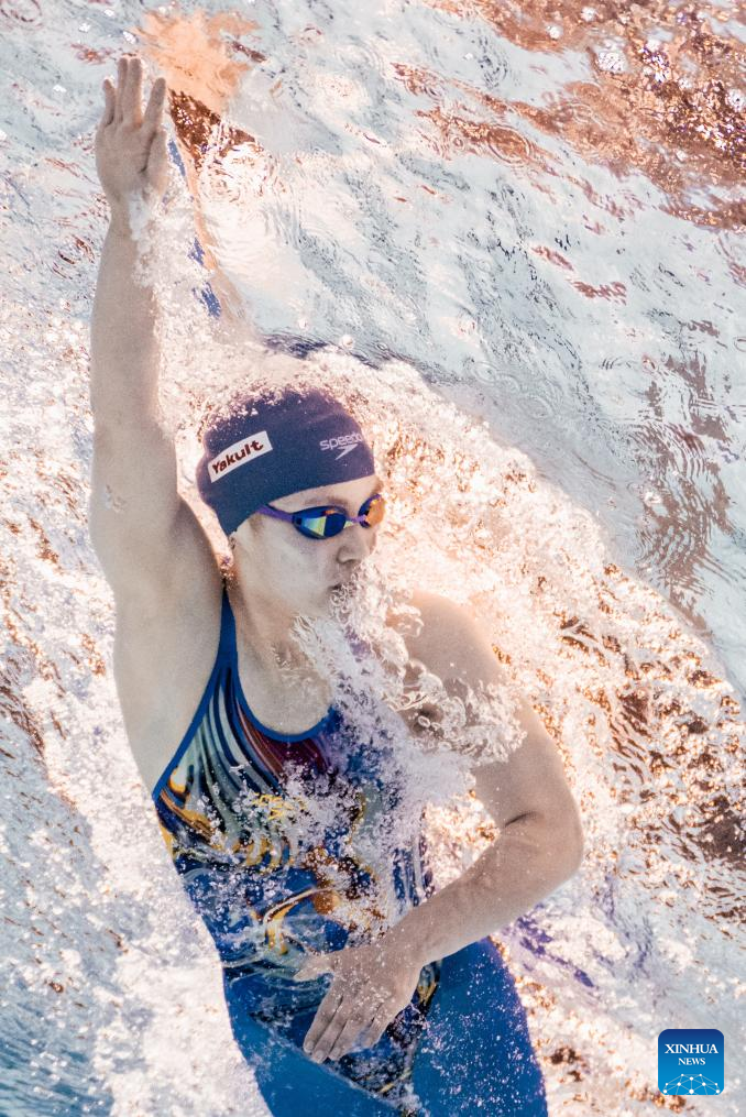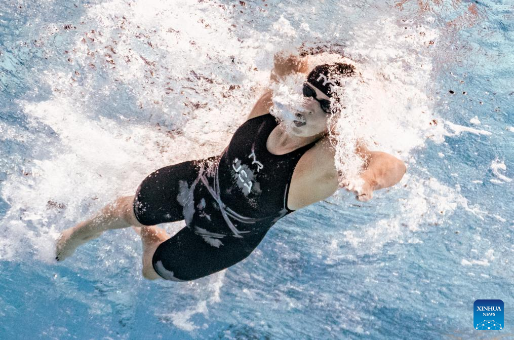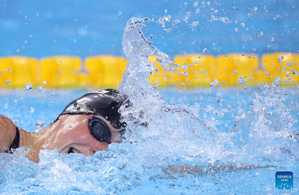 Katie Ledecky of the United States competes during the women's 1500m freestyle final of swimming at the World Aquatics Championships in Singapore, July 29, 2025. (Xinhua/Xia Yifang)