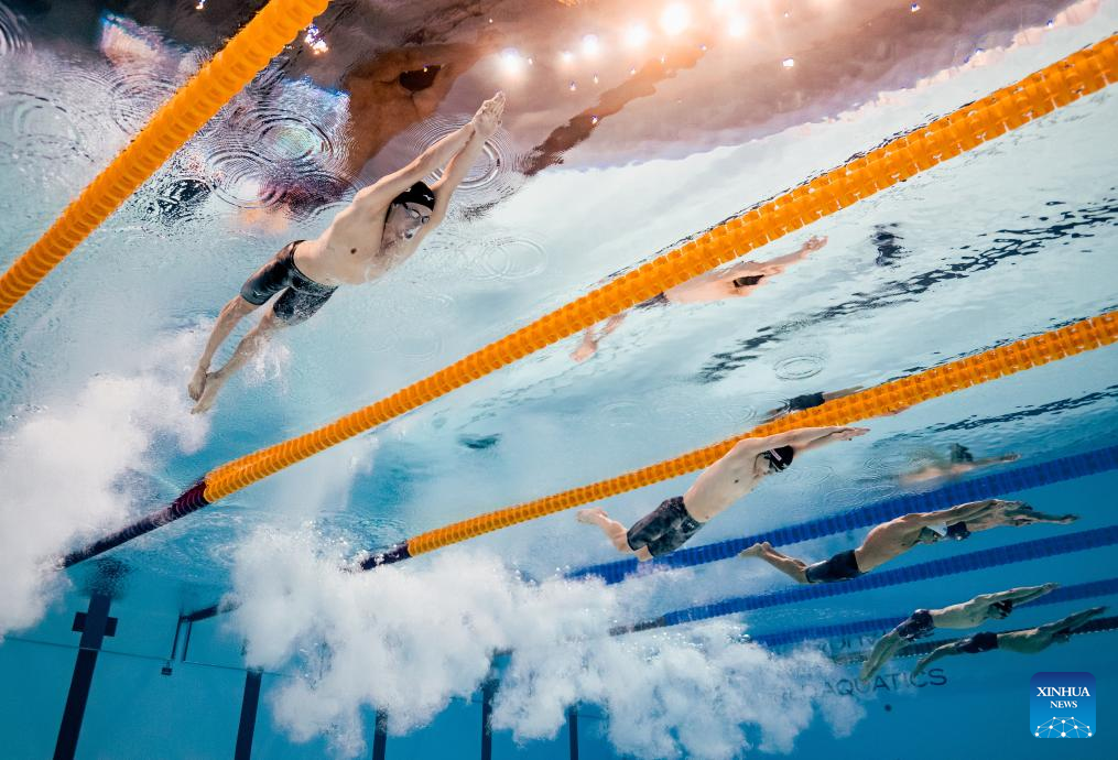 David Popovici (3rd L) of Romania competes during the men's 200m freestyle final of swimming at the World Aquatics Championships in Singapore, July 29, 2025. (Xinhua/Xia Yifang)