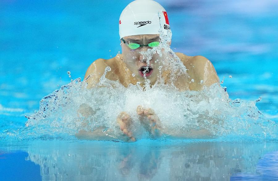 In the swimming event, Qin captured China's first swimming gold in the men's 100-meter breaststroke final, clocking 58.23 seconds.
