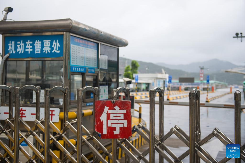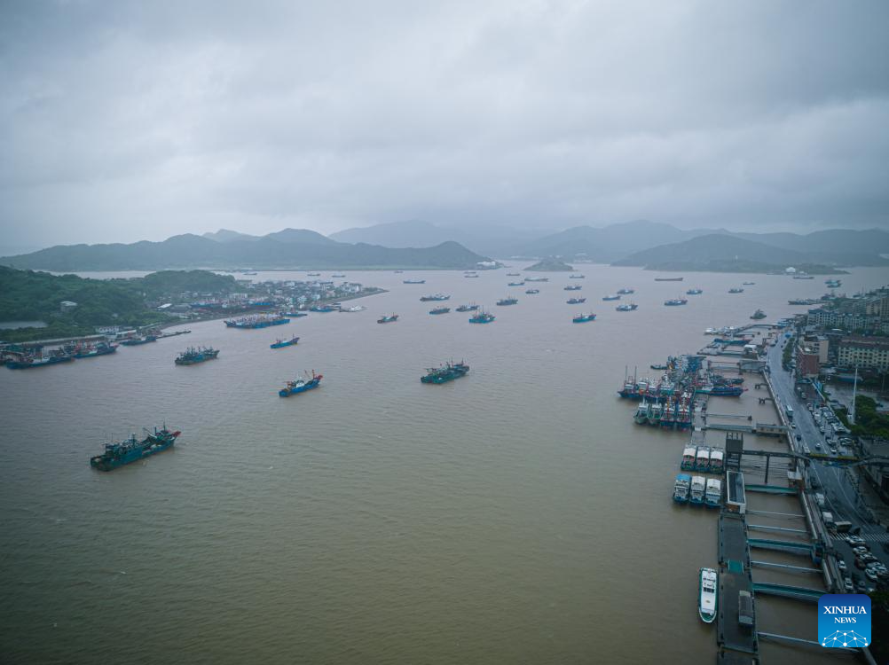 Ferry services are suspended at a wharf in Xiangshan County of Ningbo, east China's Zhejiang Province, July 29, 2025. Typhoon Co-May, the eighth typhoon of this year, brought heavy rainfall to Xiangshan County of Ningbo. Local vessels have returned to harbor to take shelter and ferry services have been suspended. (Xinhua/Jiang Han)