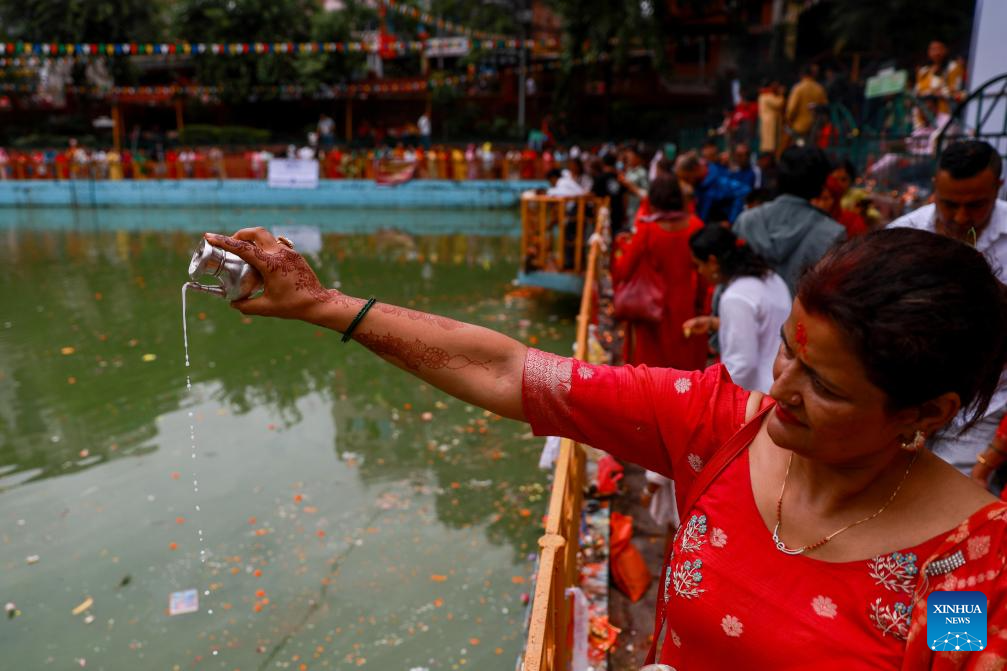 Devotees celebrate Naga Panchami, a Hindu festival dedicated to the worship of snakes, in Kathmandu, Nepal, July 29, 2025. (Photo by Sulav Shrestha/Xinhua)