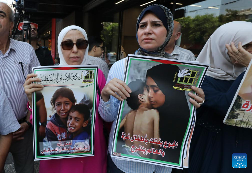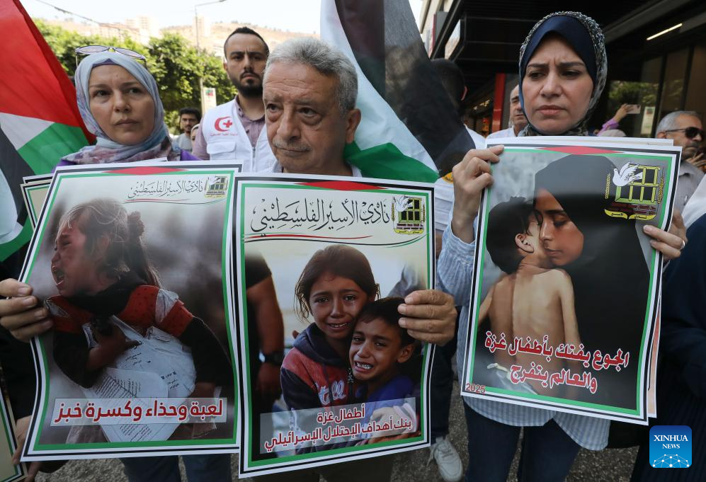Palestinians participate in a demonstration against the ongoing war in the Gaza Strip and the starvation policy imposed on the residents of Gaza, in the West Bank city of Nablus, on July 29, 2025. (Photo by Nidal Eshtayeh/Xinhua)