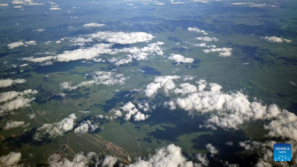 This aerial photo taken with a mobile phone shows the scenery of a grassland and lakes in Xilingol, north China's Inner Mongolia Autonomous Region, July 29, 2025. (Xinhua/Jia Lijun)