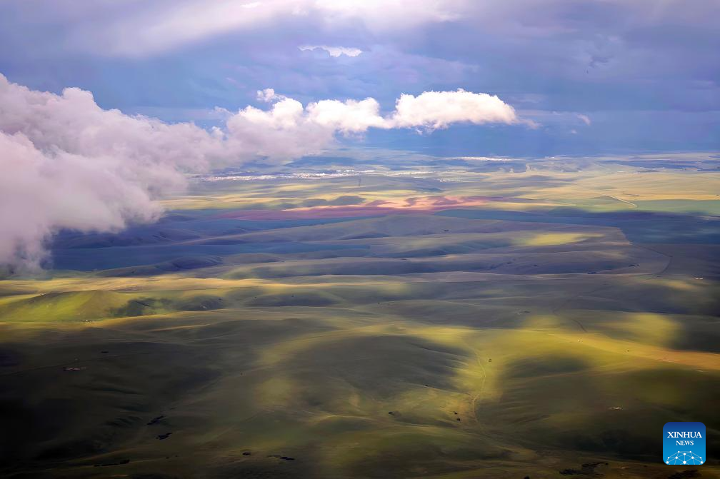 This aerial photo taken with a mobile phone shows the scenery of a grassland in Xilingol, north China's Inner Mongolia Autonomous Region, July 29, 2025. (Xinhua/Jia Lijun)