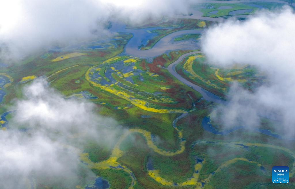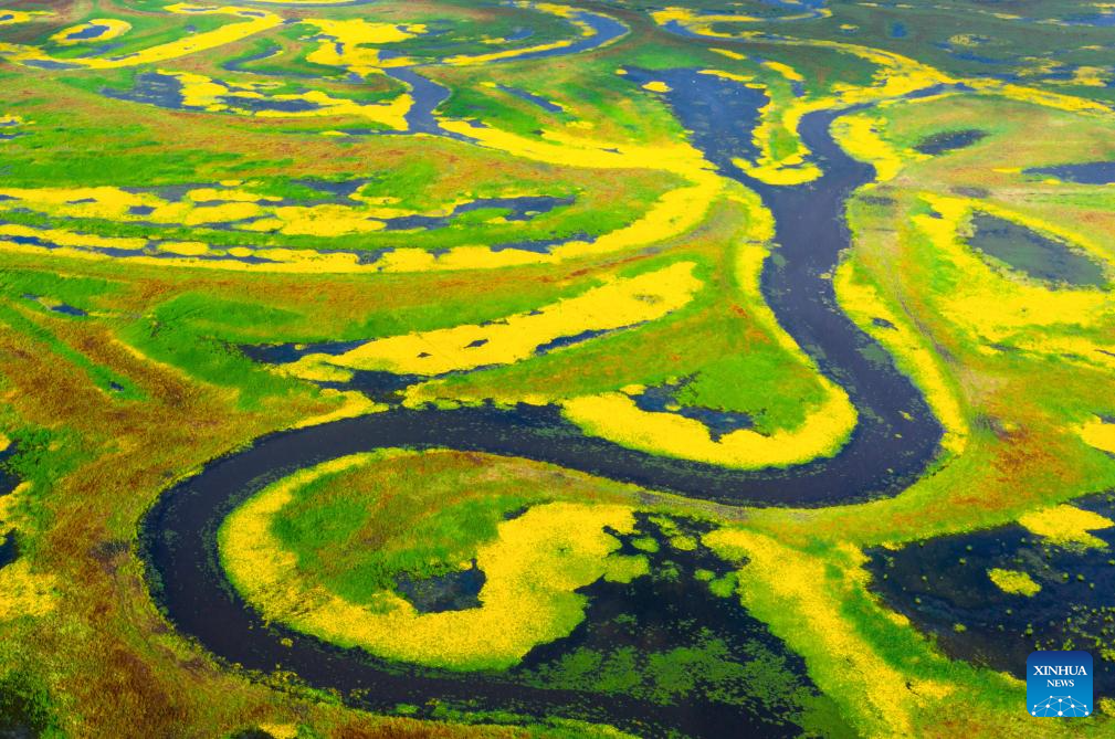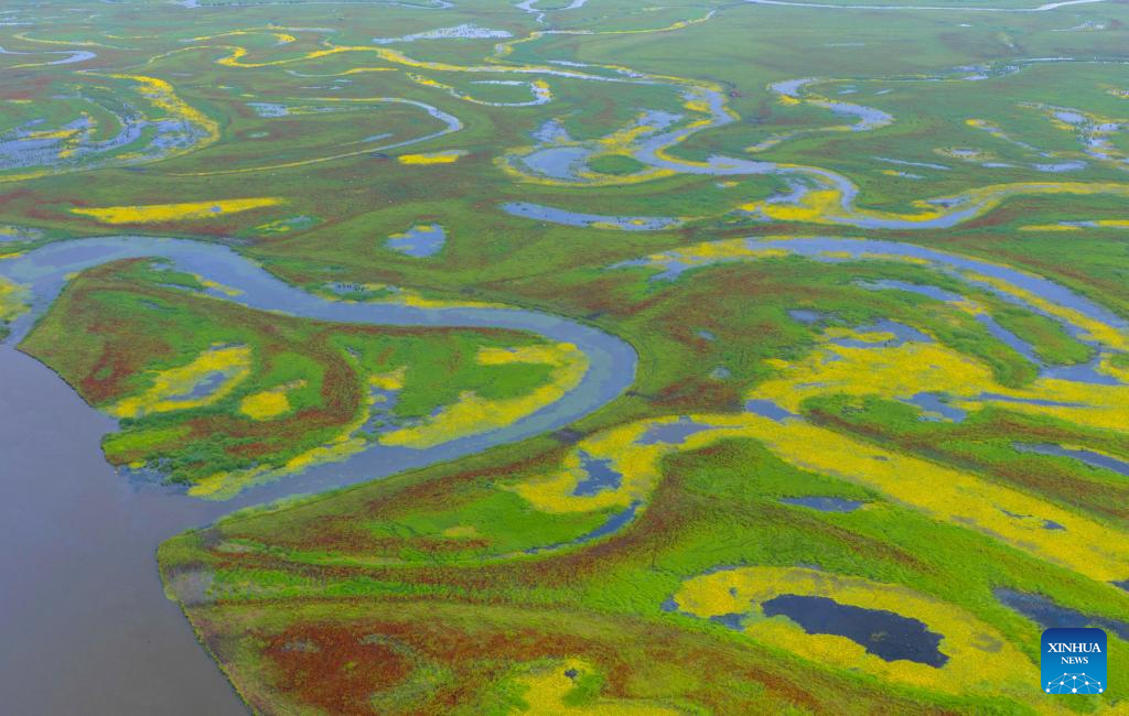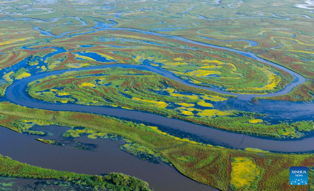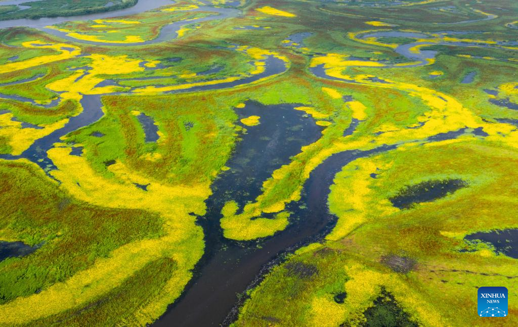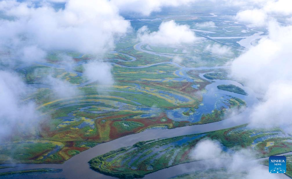 A drone photo taken on July 28, 2025 shows scenery at the Naoli River National Natural Reserve, northeast China's Heilongjiang Province. (Photo by Sheng Jingli/Xinhua)