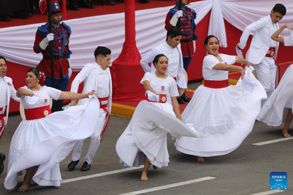 Performers participate in a parade to commemorate the 204th anniversary of Peru's independence in Lima, Peru, on July 29, 2025. (Photo by Mariana Bazo/Xinhua)