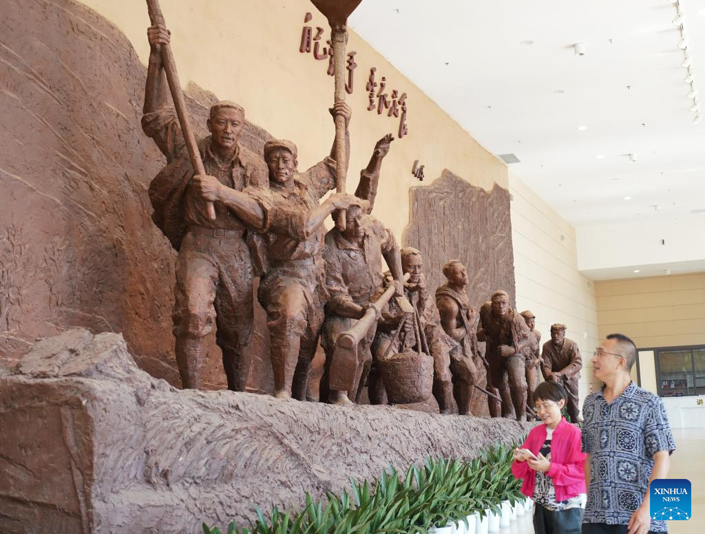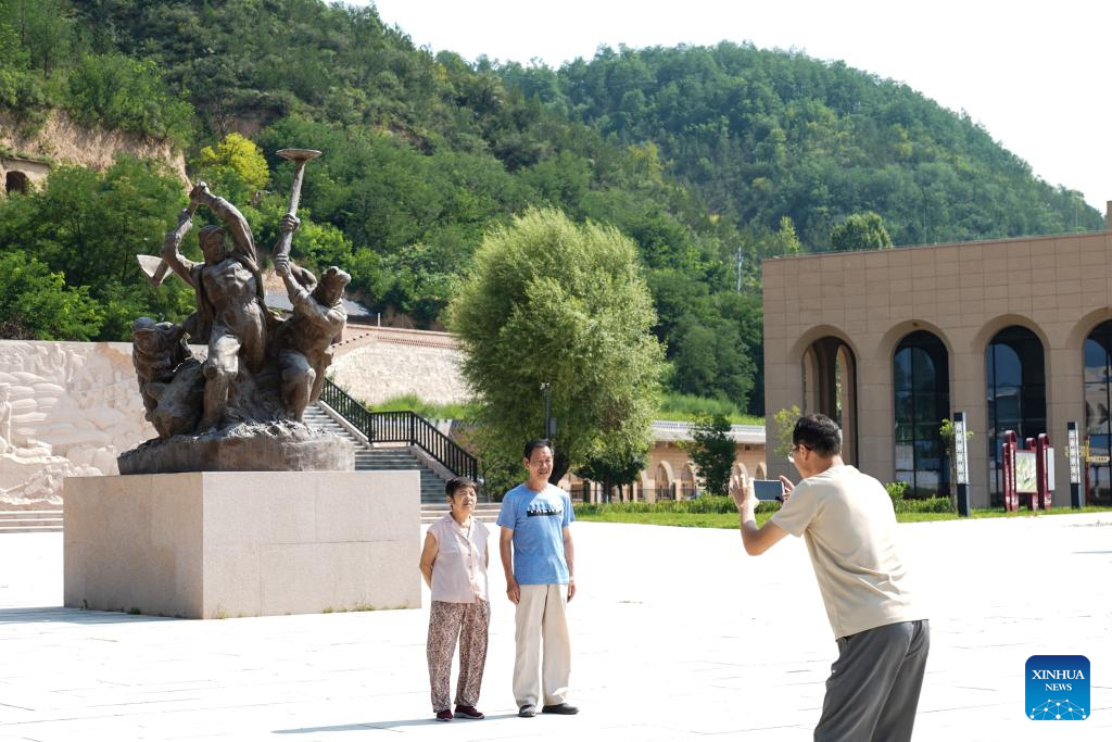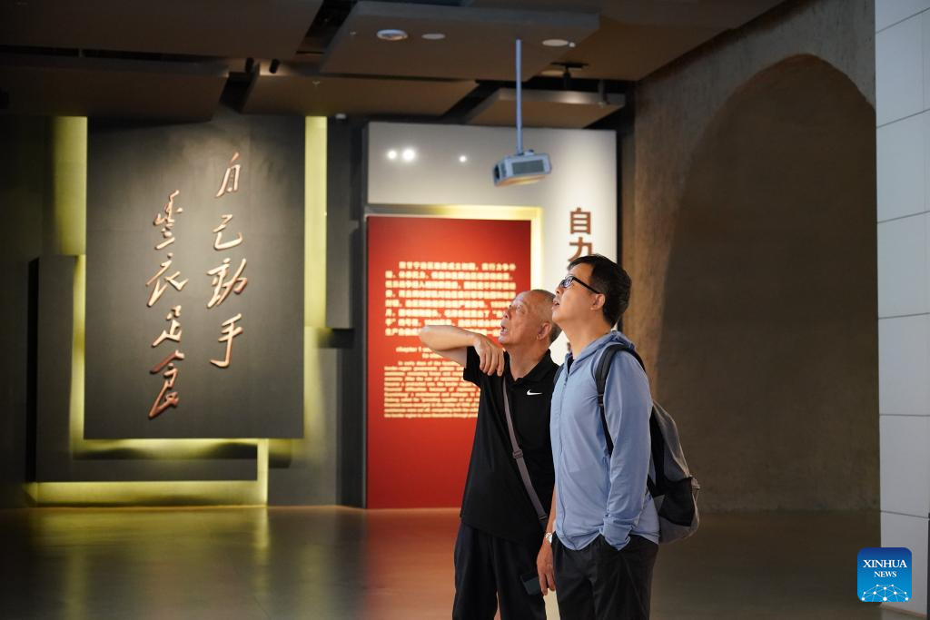 People visit the memorial hall for a large-scale production campaign in Nanniwan Township of Yan'an City, northwest China's Shaanxi Province, July 29, 2025. (Xinhua/Fan Yuqing)