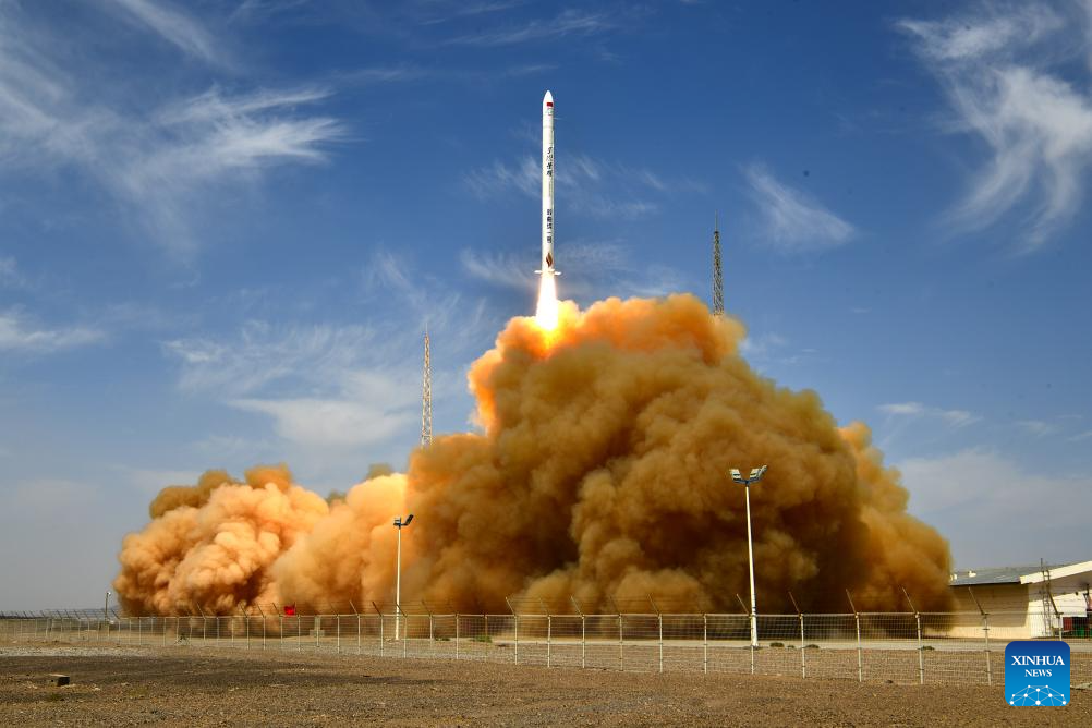 A SQX-1 Y10 commercial carrier rocket carrying a satellite blasts off from the Jiuquan Satellite Launch Center in northwest China on July 29, 2025.