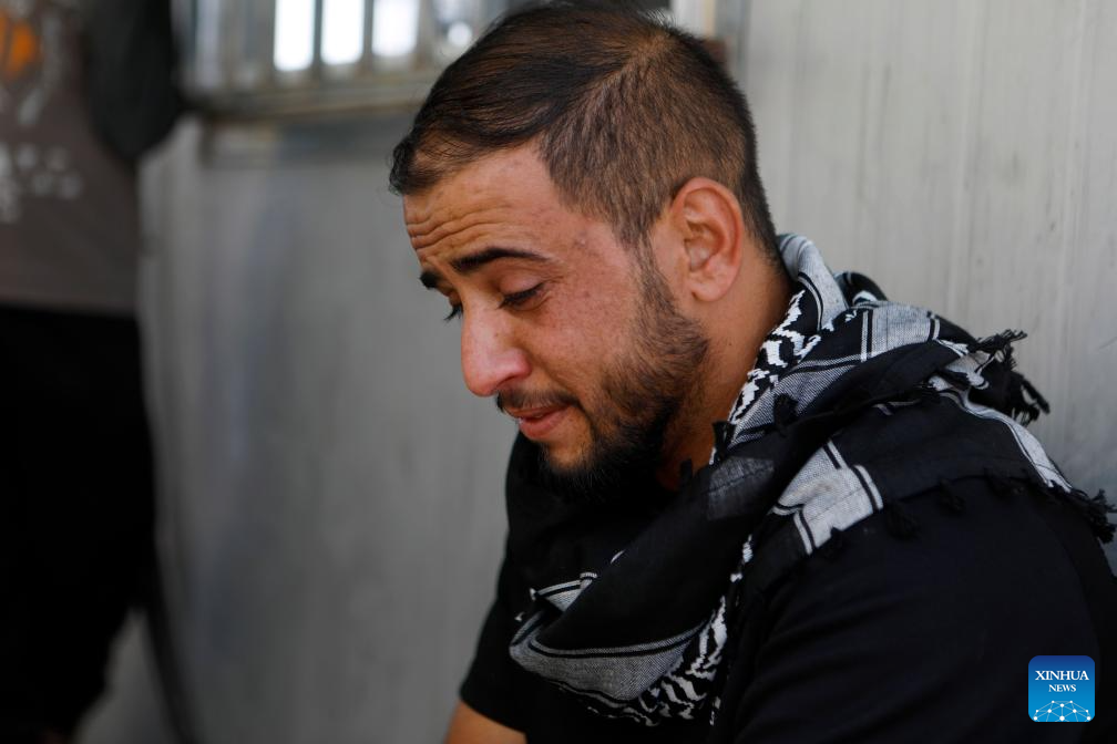 A Palestinian mourns the death of Odeh Mohammad Khalil al-Hathalin in Umm al-Khair village of Hebron, southern West Bank, on July 29, 2025. The young Palestinian man was shot on Monday evening by the Israeli forces in the village of Umm al-Khair, east of Yatta, the Palestinian official news agency WAFA reported. (Photo by Mamoun Wazwaz/Xinhua)