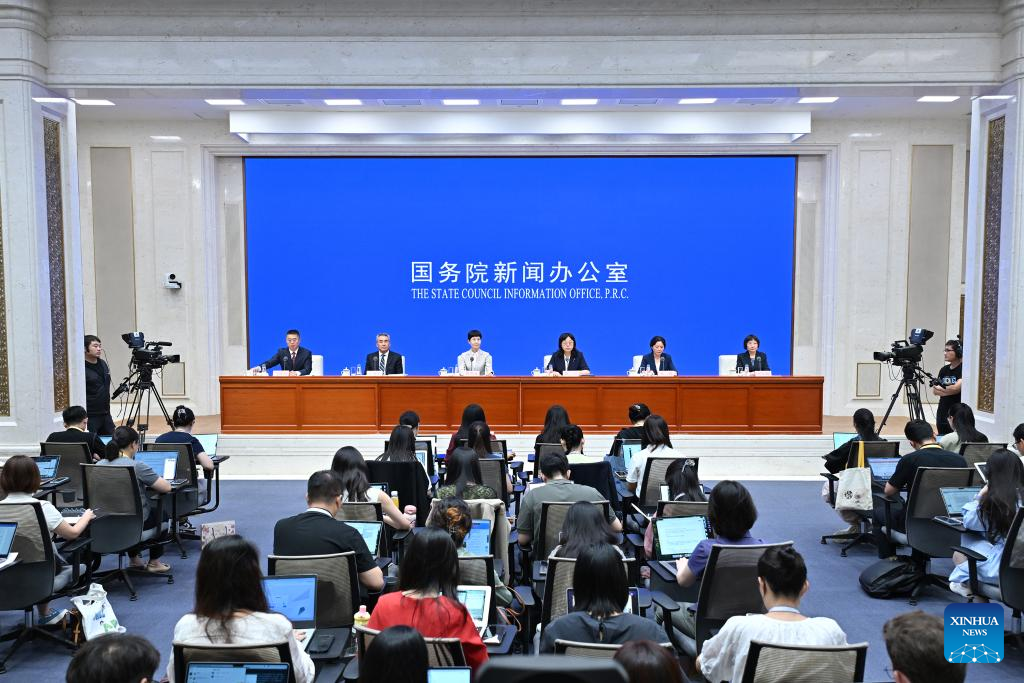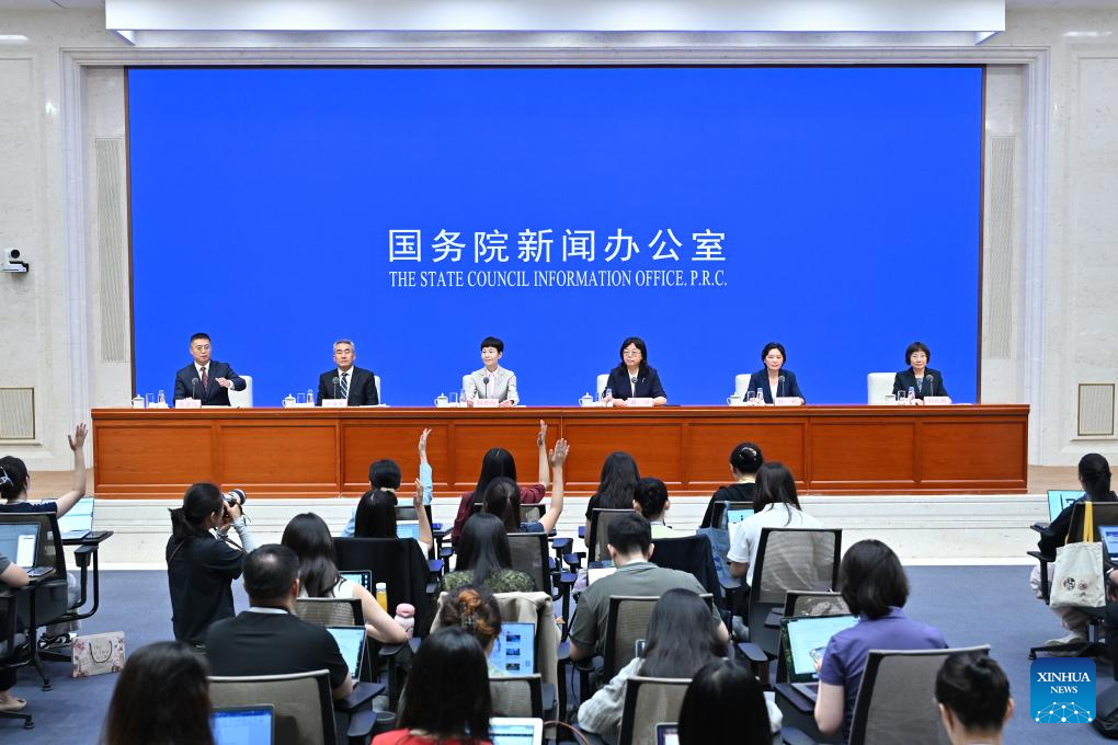 A press conference on childcare subsidy system and fertility support measures is held by the State Council Information Office (SCIO) in Beijing, capital of China, July 30, 2025. (Xinhua/Li Xin)