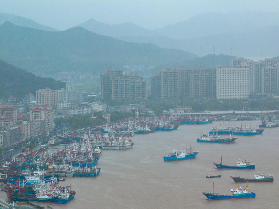 The typhoon, with the maximum wind force near its center reaching 23 meters per second, churned ashore at Zhoushan City of Zhejiang.