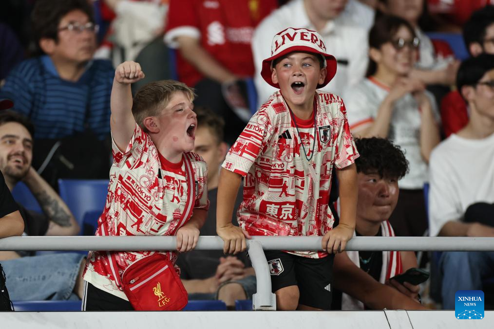 Fans of Liverpool reacts during the Meiji Yasuda J. League World Challenge 2025 match between Liverpool and Yokohama F. Marinos, in Yokohama, Japan, July 30, 2025. (Xinhua/Jia Haocheng)