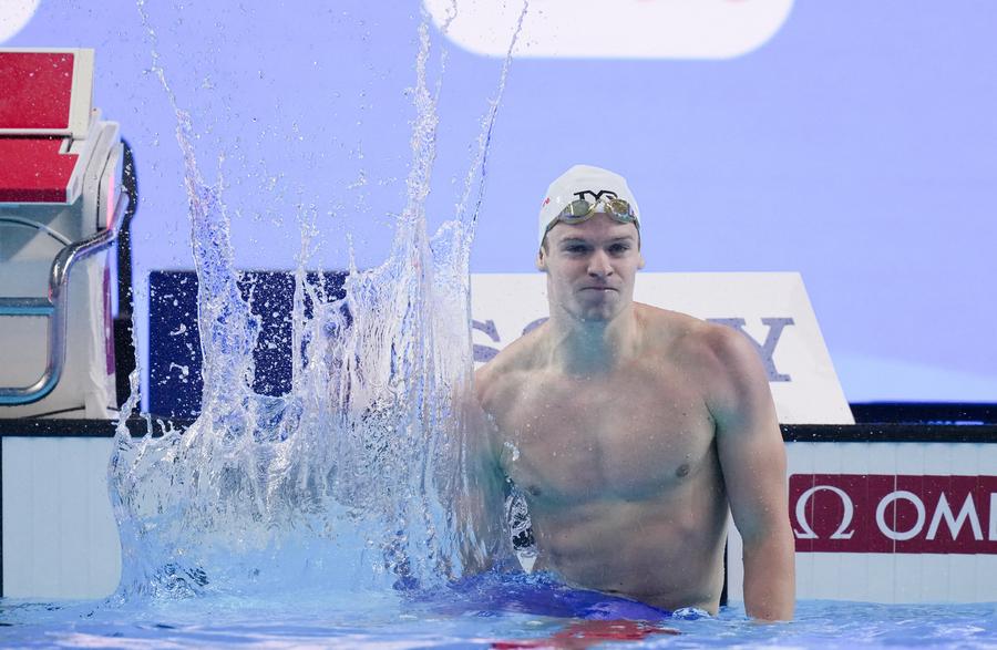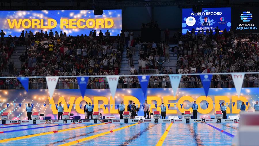 SINGAPORE, July 30 (Xinhua) -- China added two silver and two bronze medals to its tally at the World Aquatics Championships here on Wednesday, while France's Leon Marchand set a new world record in the men's 200-meter individual medley.