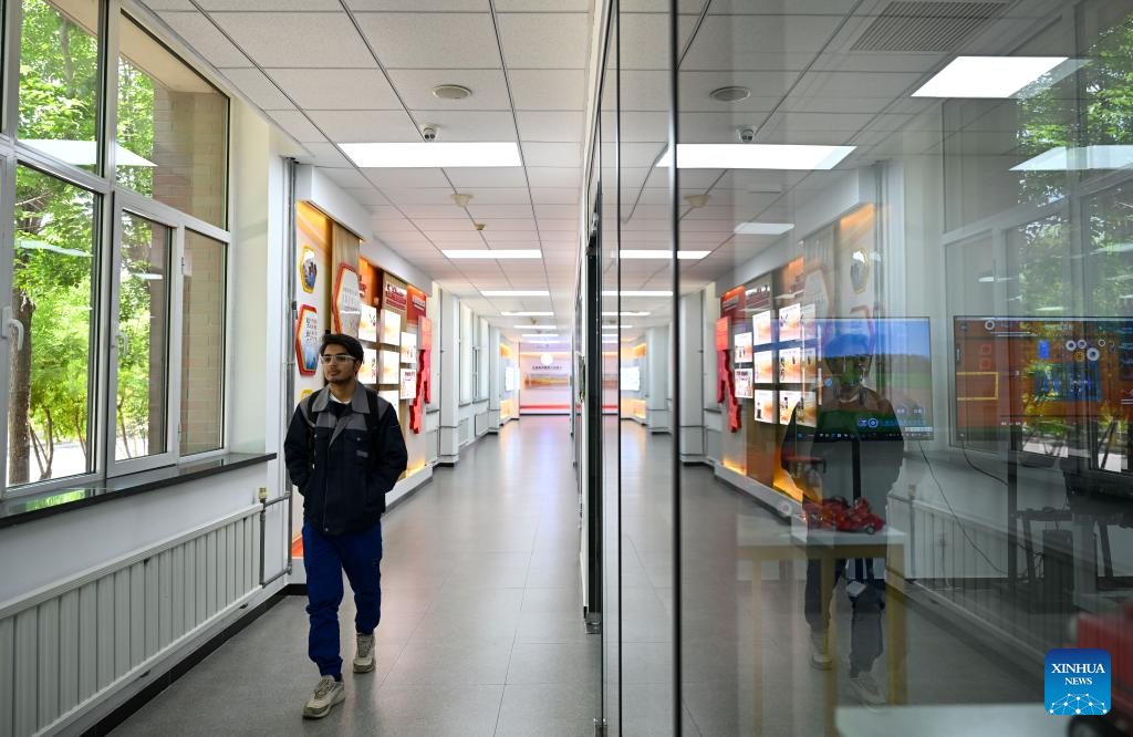 Muhammad Mohsin passes by the training classrooms at Tianjin Modern Vocational Technology College in north China's Tianjin, June 16, 2025.