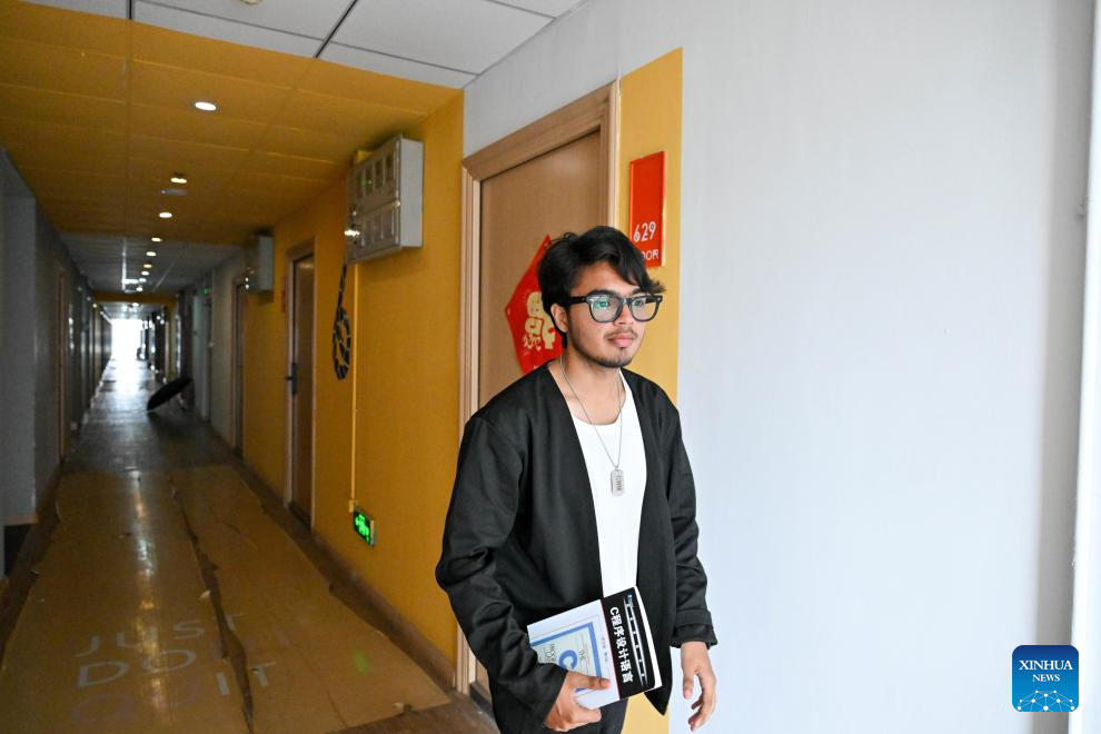 Muhammad Mohsin returns to his apartment after class in north China's Tianjin, July 21, 2025.