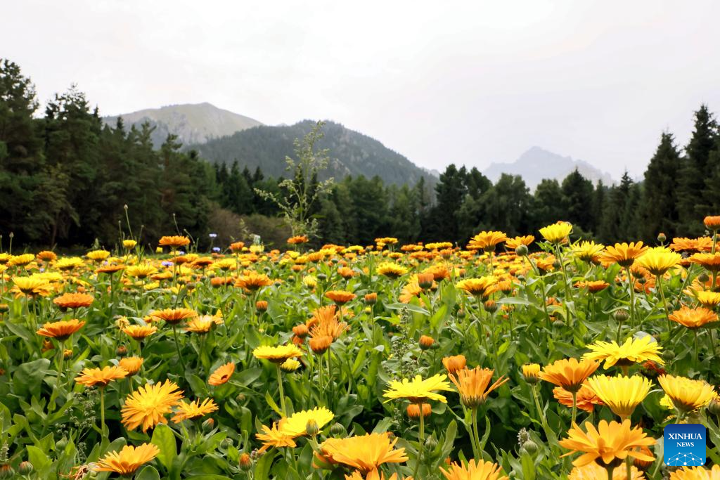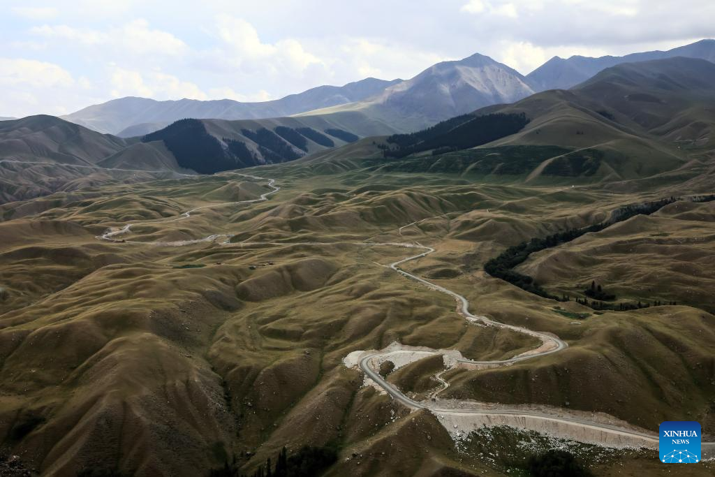 This photo taken on July 28, 2025 shows a view of Foshan National Forest Park in Wusu City, northwest China's Xinjiang Uygur Autonomous Region. In recent days, multiple areas in Xinjiang have experienced sustained high temperatures, prompting residents and tourists to seek relief in cooler scenic spots.