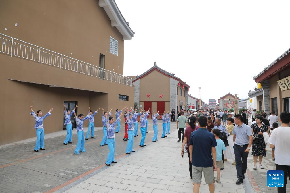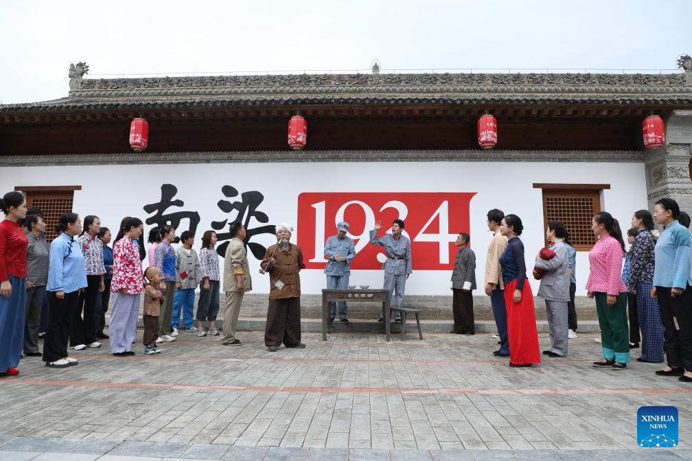 A performance is pictured at a cultural park themed on the Long March in Nanliang Town, Huachi County of northwest China's Gansu Province, Aug. 1, 2025. With modern technology and interactive design, the park depicts a vivid history of the Long March, a military maneuver carried out by the Chinese Workers' and Peasants' Red Army from 1934 to 1936. (Xinhua/Zhang Zhimin)