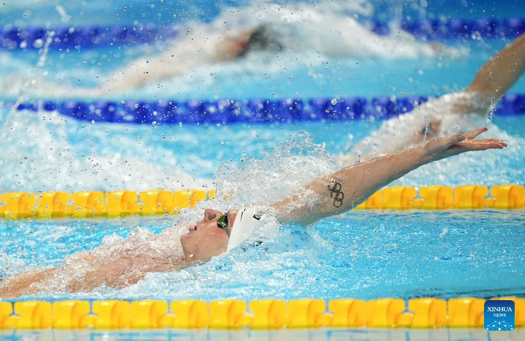 Pieter Coetze of South Africa competes during the men's 200m backstroke final at the World Aquatics Championships in Singapore, Aug. 1, 2025. (Xinhua/Xia Yifang)