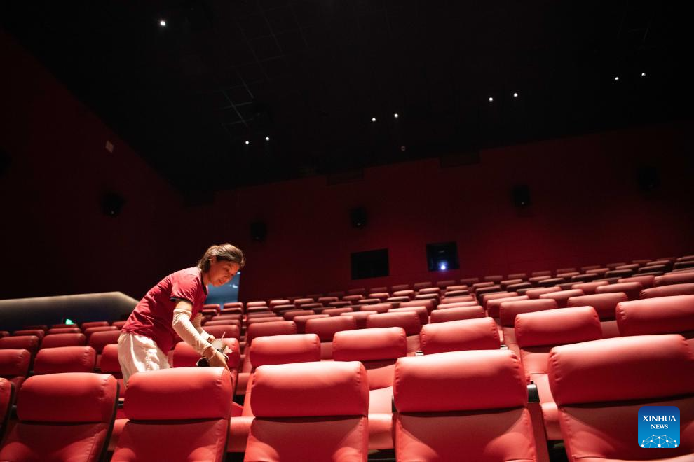 A staff member cleans the seats of a movie theater in Changchong Village, Lujiang County, east China's Anhui Province, July 26, 2025. Changchong Village has endeavored to develop its tourism industry by integrating its natural scenery and cultural experiences. The movie theater and tea house built in the nature environment provide unique experiences for visitors. Changchong has became a popular attraction for urban residents to enjoy life in the countryside. (Xinhua/Zhang Duan)