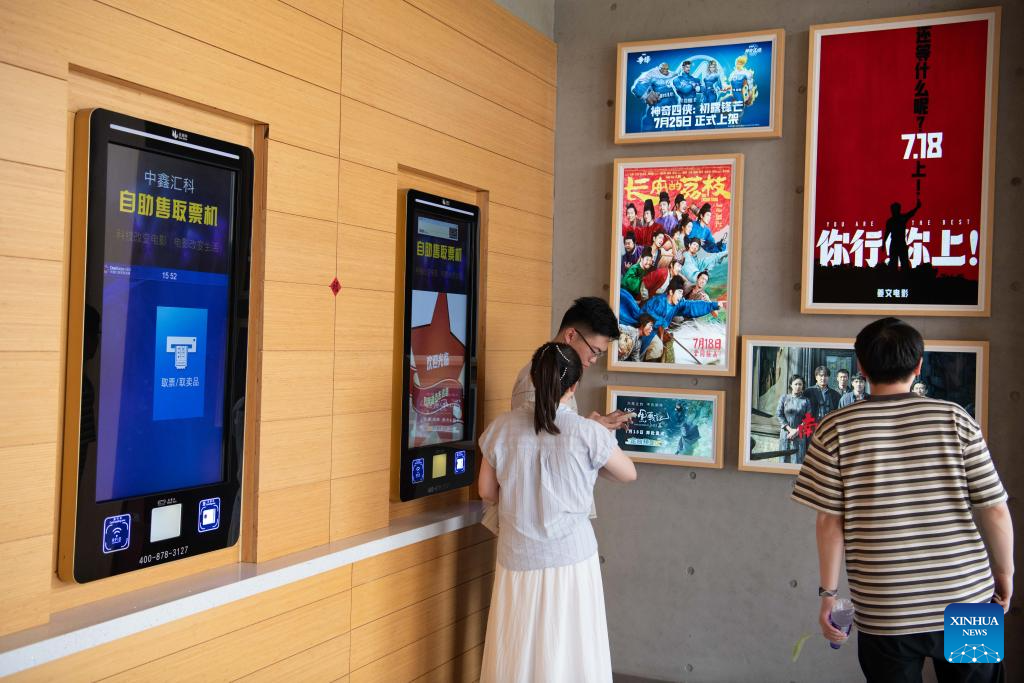Tourists are pictured at a movie theater in Changchong Village, Lujiang County, east China's Anhui Province, July 26, 2025. Changchong Village has endeavored to develop its tourism industry by integrating its natural scenery and cultural experiences. The movie theater and tea house built in the nature environment provide unique experiences for visitors. Changchong has became a popular attraction for urban residents to enjoy life in the countryside. (Xinhua/Zhang Duan)