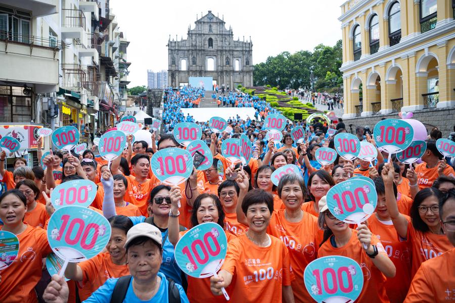 At the iconic Ruins of St. Paul's, the "100-day countdown fitness walk" kicked off with enthusiasm. Guests and citizens set off in high spirits, walking through Macao's historic streets all the way to Senado Square, where vibrant performances followed to liven up the celebration.
