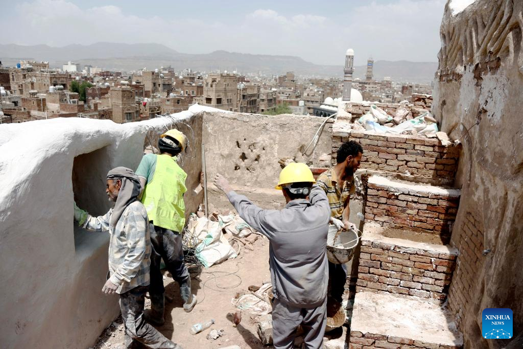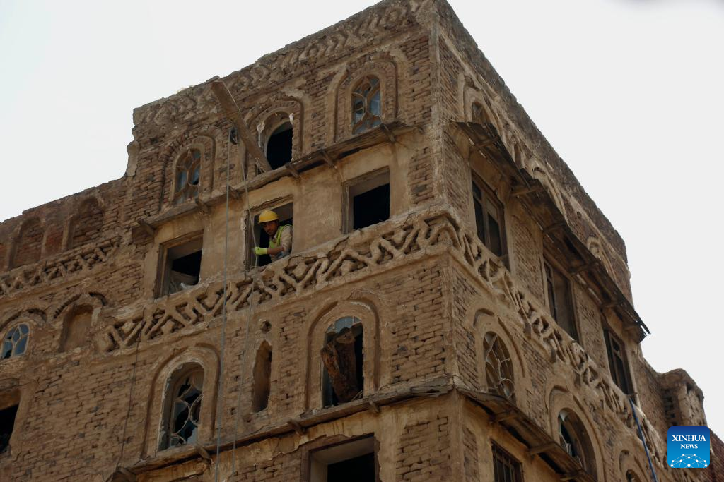Yemen's UNESCO-listed Old City of Sanaa, home to over 6,000 unique multi-story mud-brick structures dating back 2,500 years, is undergoing urgent restoration after monsoon damage to its historic fabric, according to local residents and authorities. (Photo by Mohammed Mohammed/Xinhua)