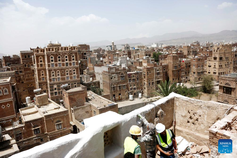 Yemen's UNESCO-listed Old City of Sanaa, home to over 6,000 unique multi-story mud-brick structures dating back 2,500 years, is undergoing urgent restoration after monsoon damage to its historic fabric, according to local residents and authorities. (Photo by Mohammed/Xinhua)