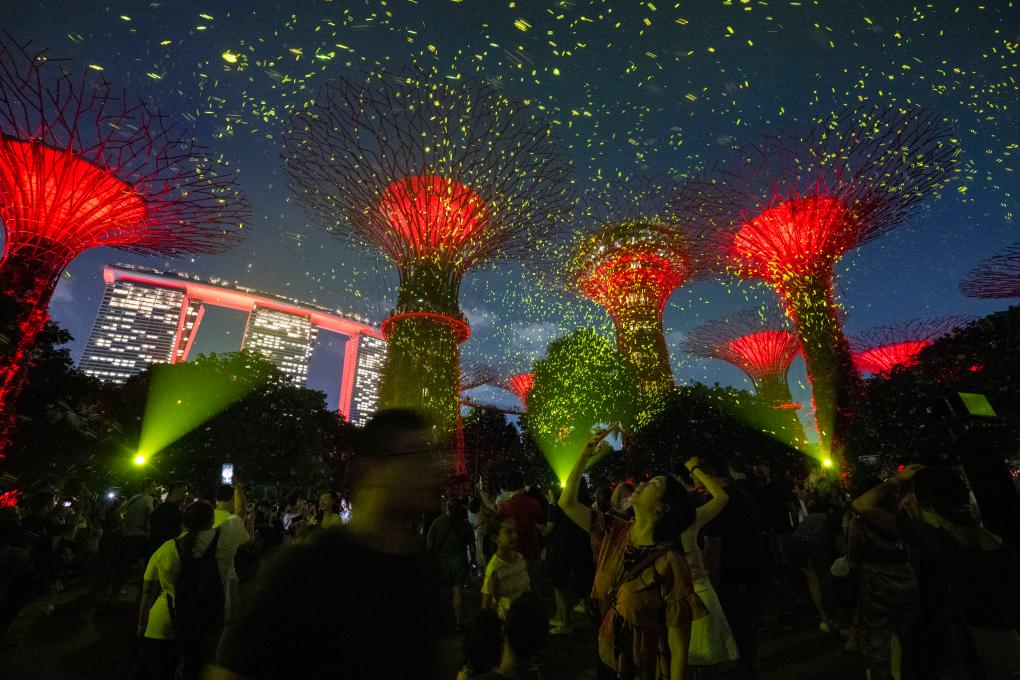 Tourists visit the firefly-like SPARK light installation, as part of celebration activities for Singapore's 60th anniversary of independence held in Singapore's Gardens by the Bay, on Aug. 1, 2025. (Photo by Then Chih Wey/Xinhua)Tourists visit the firefly-like SPARK light installation, as part of celebration activities for Singapore's 60th anniversary of independence held in Singapore's Gardens by the Bay, on Aug. 1, 2025. (Photo by Then Chih Wey/Xinhua)Tourists visit the firefly-like SPARK light installation, as part of celebration activities for Singapore's 60th anniversary of independence held in Singapore's Gardens by the Bay, on Aug. 1, 2025. (Photo by Then Chih Wey/Xinhua)Tourists visit the firefly-like SPARK light installation, as part of celebration activities for Singapore's 60th anniversary of independence held in Singapore's Gardens by the Bay, on Aug. 1, 2025. (Photo by Then Chih Wey/Xinhua)