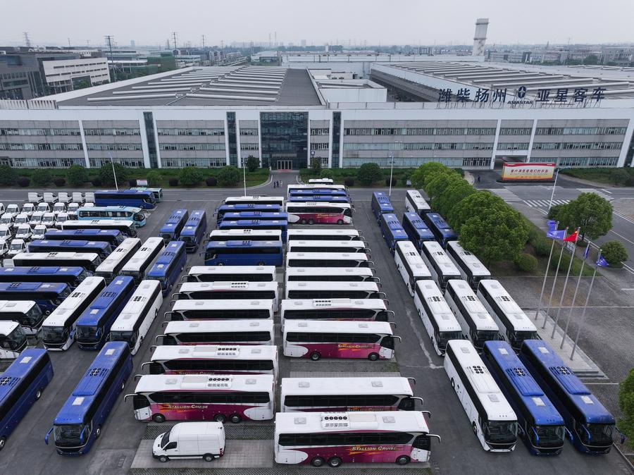 An electric bus manufactured by Yangzhou Asiastar Bus Co., Ltd. runs on the street in Buenos Aires, Argentina, May 7, 2025. (Photo by Martin Zabala/Xinhua)An electric bus manufactured by Yangzhou Asiastar Bus Co., Ltd. runs on the street in Buenos Aires, Argentina, July 4, 2025. (Xinhua/Meng Dingbo)A passenger scans QR code to learn about the operation of electric bus in Buenos Aires, Argentina, May 7, 2025. (Photo by Martin Zabala/Xinhua)Passengers are pictured on an electric bus manufactured by Yangzhou Asiastar Bus Co., Ltd. in Buenos Aires, Argentina, July 17, 2025. (Xinhua/Meng Dingbo)A staff member examines an electric bus manufactured by Yangzhou Asiastar Bus Co., Ltd. in Buenos Aires, Argentina, July 4, 2025. (Photo by Martin Zabala/Xinhua)A driver drives an electric bus manufactured by Yangzhou Asiastar Bus Co., Ltd. on the street in Buenos Aires, Argentina, May 7, 2025. (Photo by Martin Zabala/Xinhua)Passengers are pictured on an electric bus manufactured by Yangzhou Asiastar Bus Co., Ltd. in Buenos Aires, Argentina, May 7, 2025. (Photo by Martin Zabala/Xinhua)Workers are pictured in a workshop of Yangzhou Asiastar Bus Co., Ltd. in Yangzhou, east China's Jiangsu Province, May 22, 2025. (Xinhua/Li Bo)A worker is pictured in a workshop of Yangzhou Asiastar Bus Co., Ltd. in Yangzhou, east China's Jiangsu Province, May 22, 2025. (Xinhua/Li Bo)Workers are pictured in a workshop of Yangzhou Asiastar Bus Co., Ltd. in Yangzhou, east China's Jiangsu Province, May 22, 2025. (Xinhua/Li Bo)A worker is pictured in a workshop of Yangzhou Asiastar Bus Co., Ltd. in Yangzhou, east China's Jiangsu Province, May 22, 2025. (Xinhua/Li Bo)A drone photo shows a view of Yangzhou Asiastar Bus Co., Ltd. in Yangzhou, east China's Jiangsu Province, May 22, 2025. (Xinhua/Li Bo)■