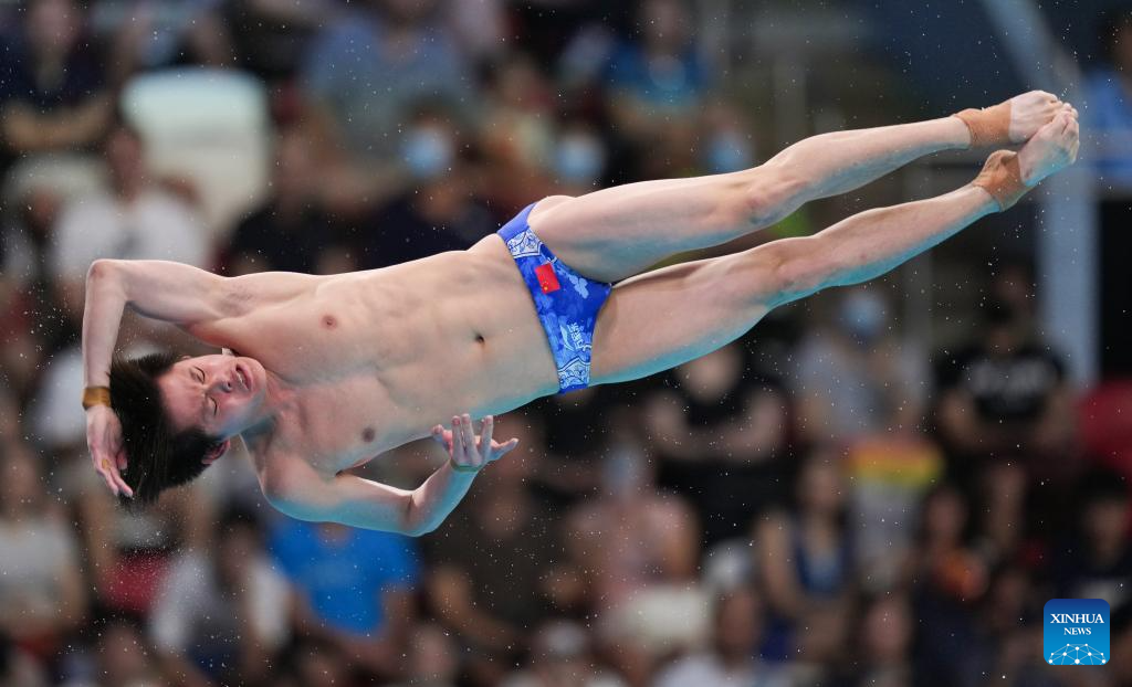 Zhao Renjie of China competes during the men's 10m platform final of diving at the World Aquatics Championships in Singapore, Aug. 3, 2025. (Xinhua/Wu Zhizun)