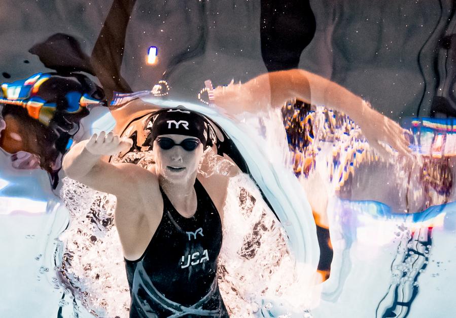 SINGAPORE, Aug. 3 (Xinhua) -- The United States emerged as the biggest winner on the penultimate day of the swimming competition at the World Aquatics Championships here on Saturday, as Katie Ledecky captured her seventh world title in the women's 800m freestyle, before the U.S. mixed 4x100m freestyle relay team struck gold with a new world record.