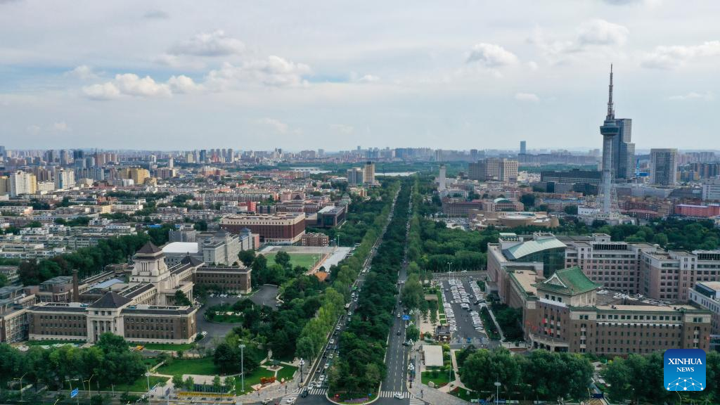 An aerial drone photo shows a view of the Xinmin Avenue in Changchun, northeast China's Jilin Province, July, 30, 2025. Changchun's Xinmin Avenue is a historical major road first built in 1933. After a recent renovation, it reopened to the public on July 5.