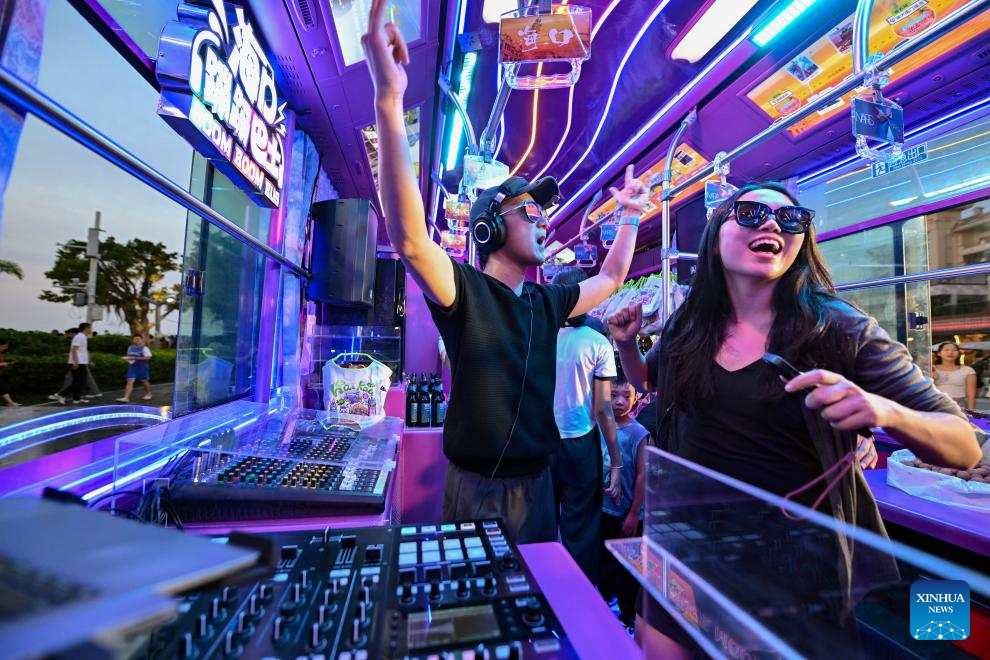 People have fun at the opening ceremony of the 2025 (26th) Hainan Island Carnival in Haikou, south China's Hainan Province, Aug. 2, 2025. The 2025 (26th) Hainan Island Carnival kicked off on Saturday here. With various activities arranged across the island, the event will last till Aug. 31. (Xinhua/Guo Cheng)